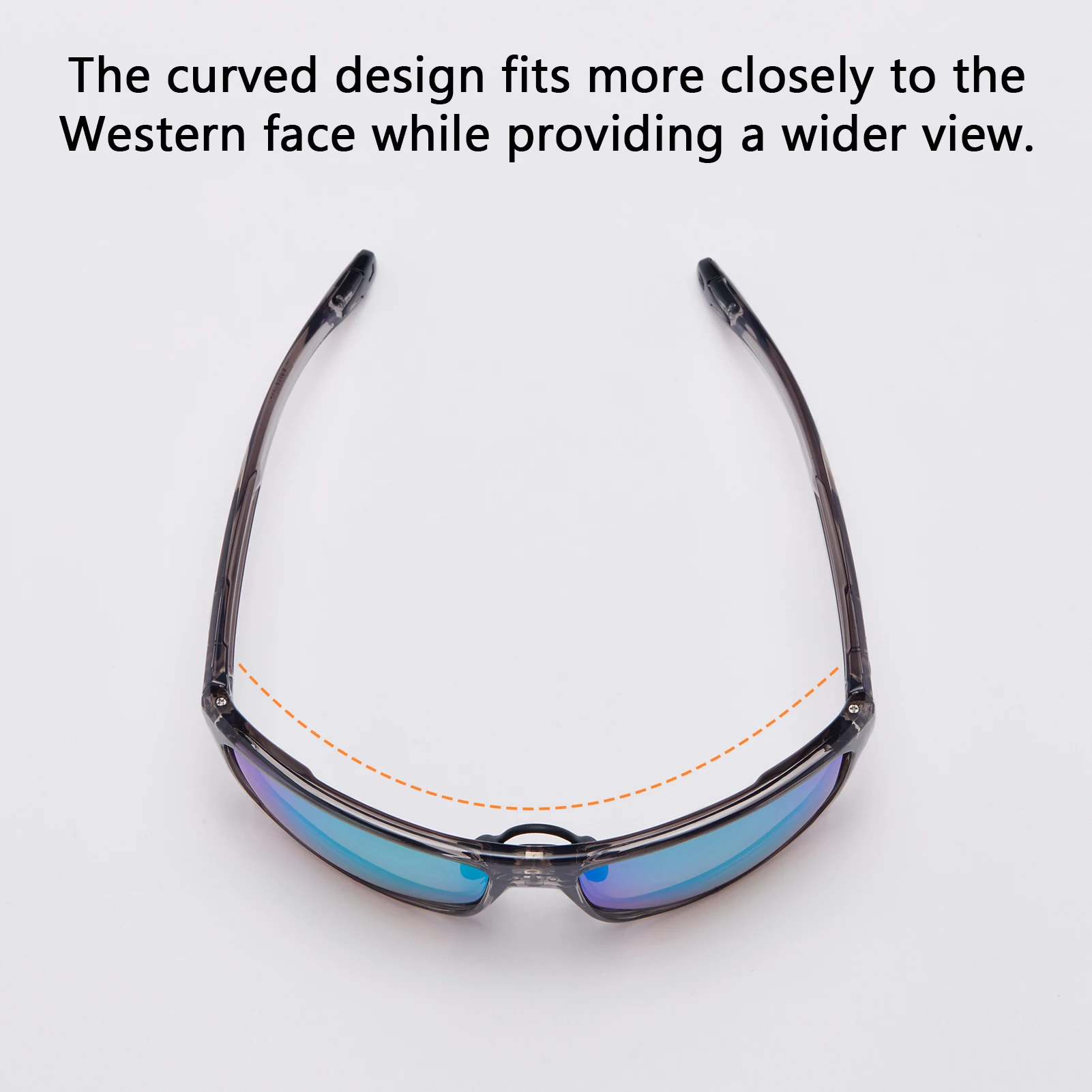 MARCO DE RENDIMIENTO: La montura y las patillas de las gafas de sol TPX son ultraligeras y cómodas, por lo que puede usar las gafas de sol deportivas todo el día y no sentirá ninguna presión o tensión en la cara; el marco curvo ergonómico se ajusta más a la cara occidental mientras proporciona una vista más amplia, Y la curvatura especialmente diseñada también evita que la lente se empañe; Diseño de clip en las puntas de las patillas para conectar firmemente la cuerda de las gafas