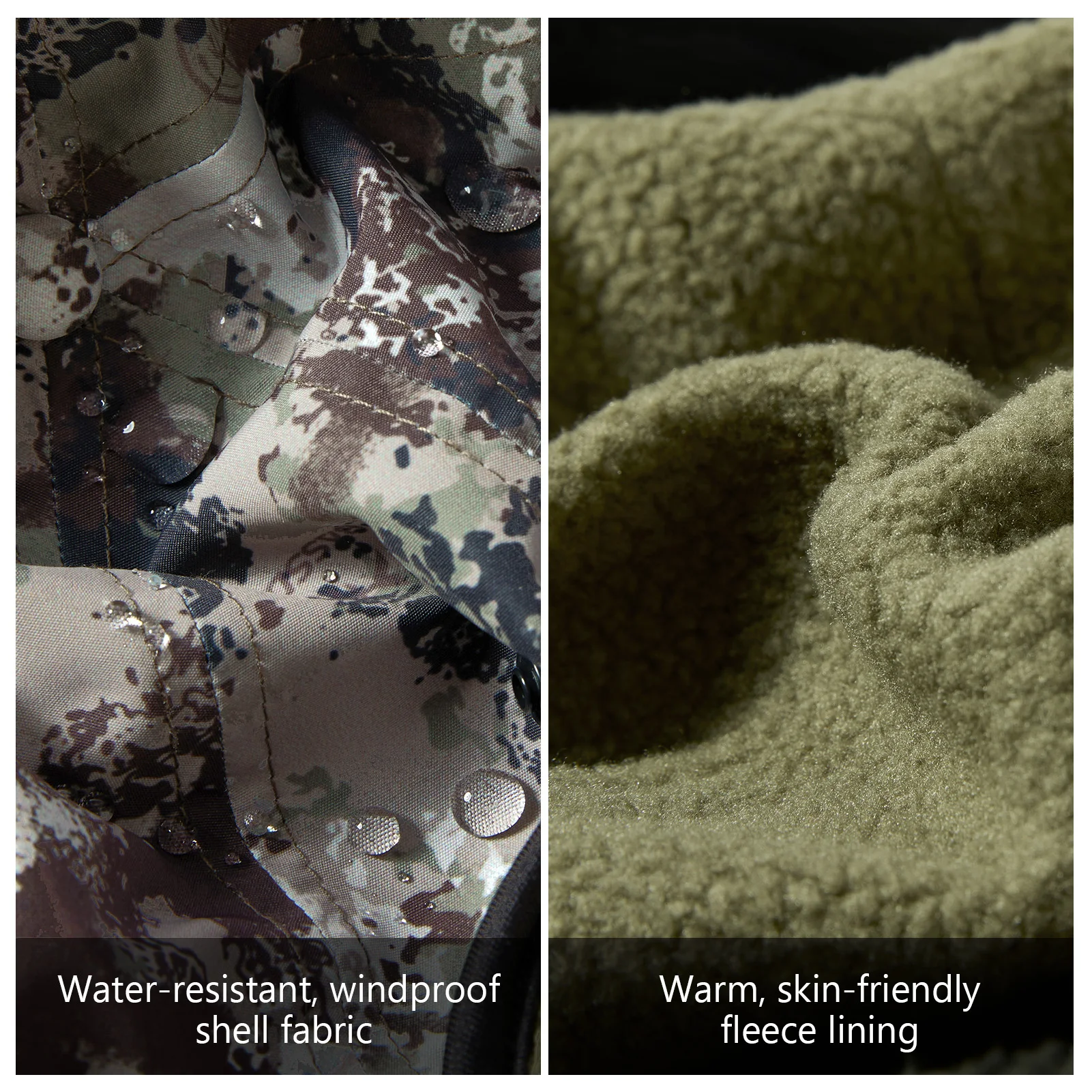 Carcasa resistente al agua y al viento y forro polar cálido y agradable para la piel para un calor seco en maderas frías.