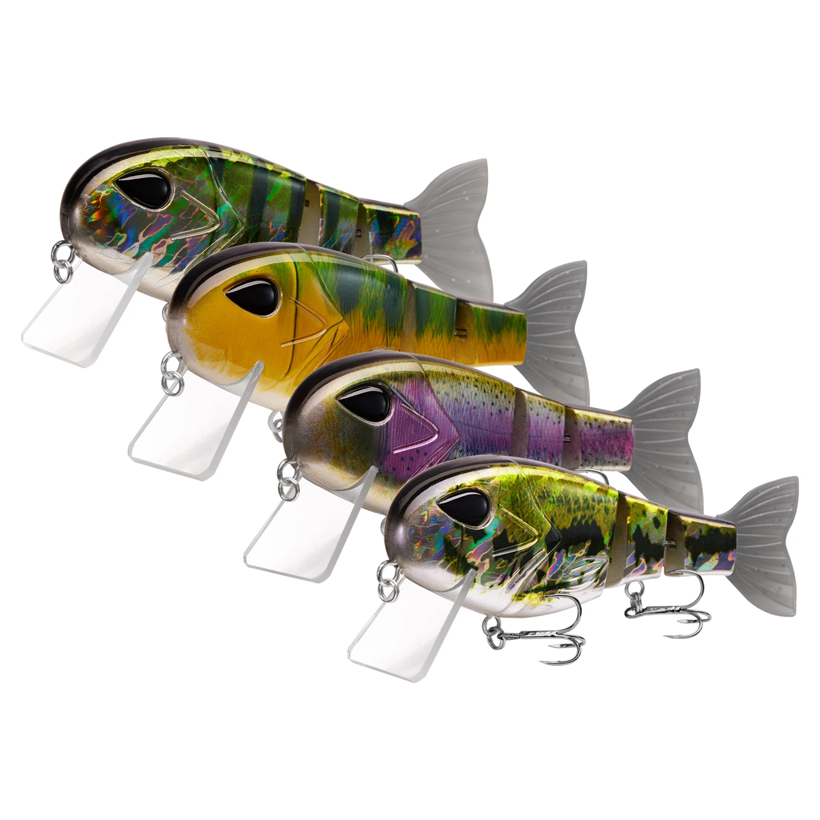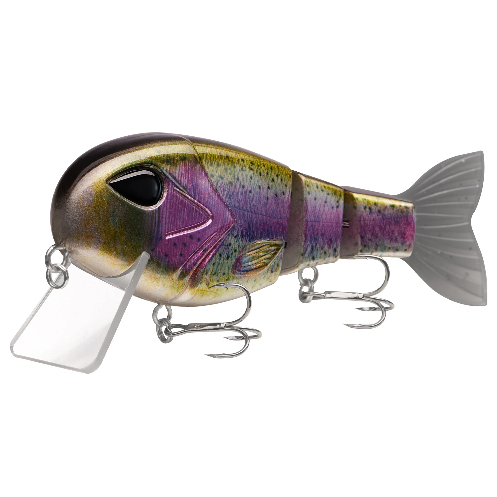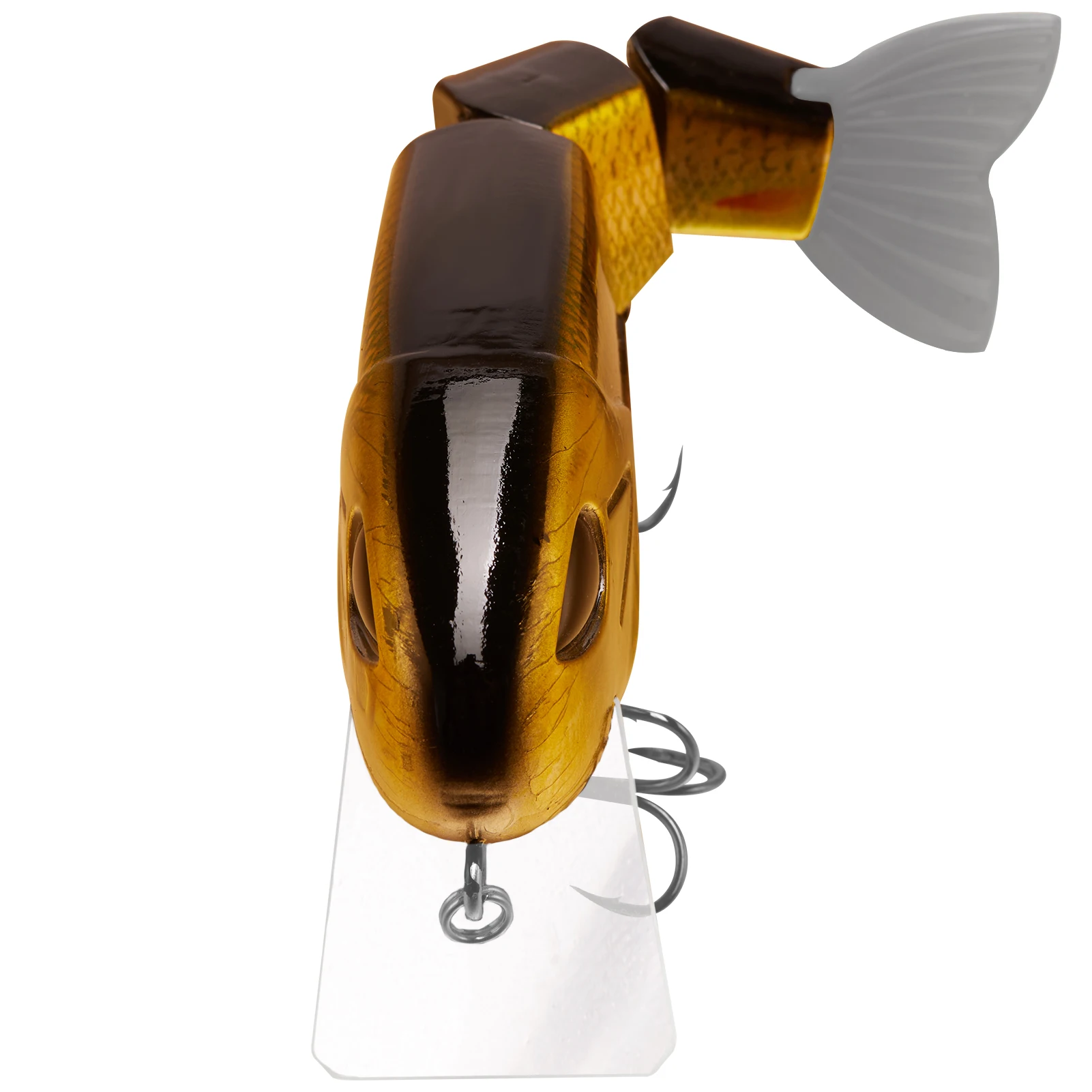La construcción multiarticulada mejora el movimiento de natación; Una cola de pez de goma suave y texturizada para dar al cebo una Acción Secundaria; Acabado con un conjunto de duradero, ganchos triples de tamaño 4 afilados que proporcionan una alta relación de enganche