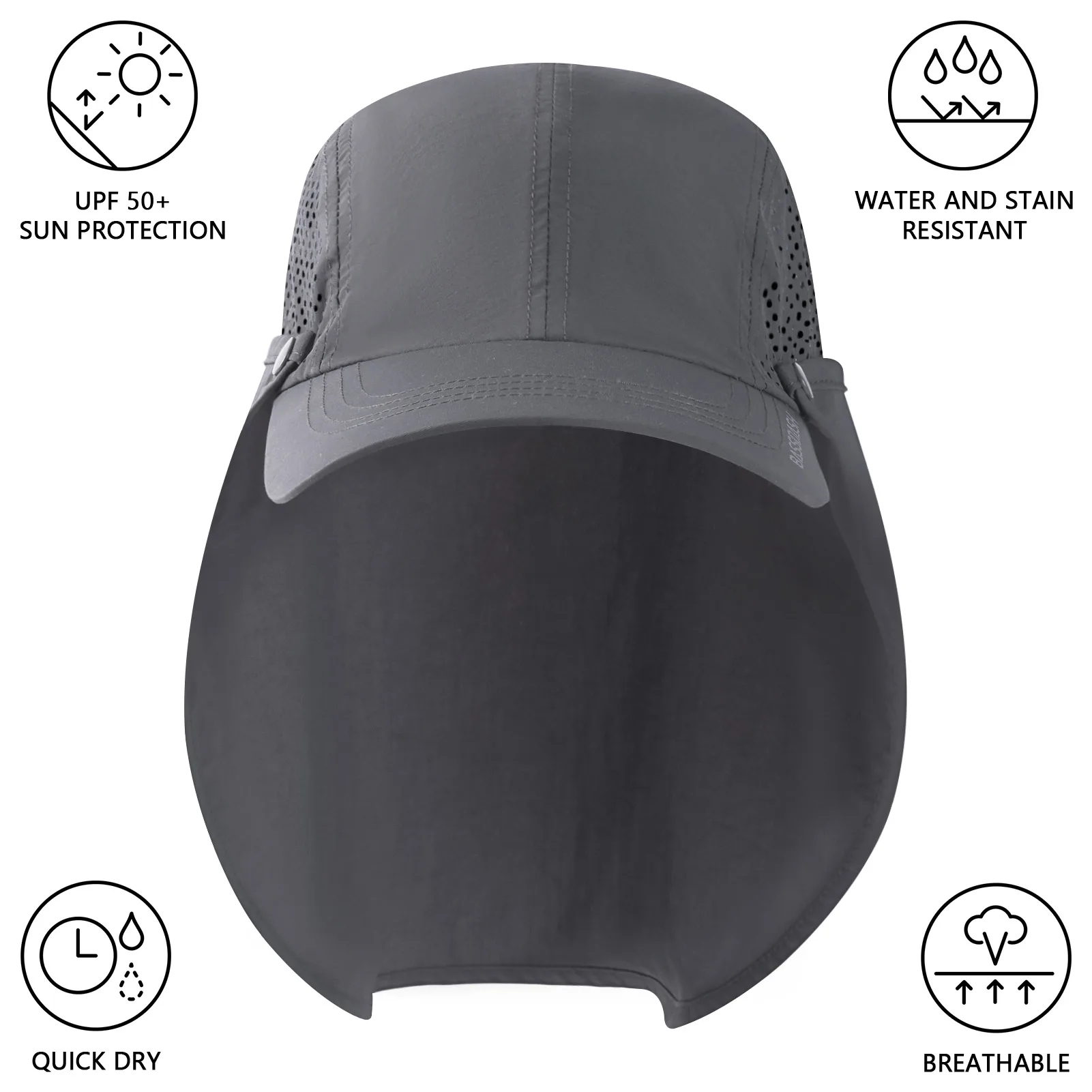 Tela clasificada UPF 50 + junto con ala ancha y solapa de cuello larga para bloquear los dañinos rayos UVA y UVB, protegiendo su piel durante todo el verano y manteniéndolo fresco bajo el sol