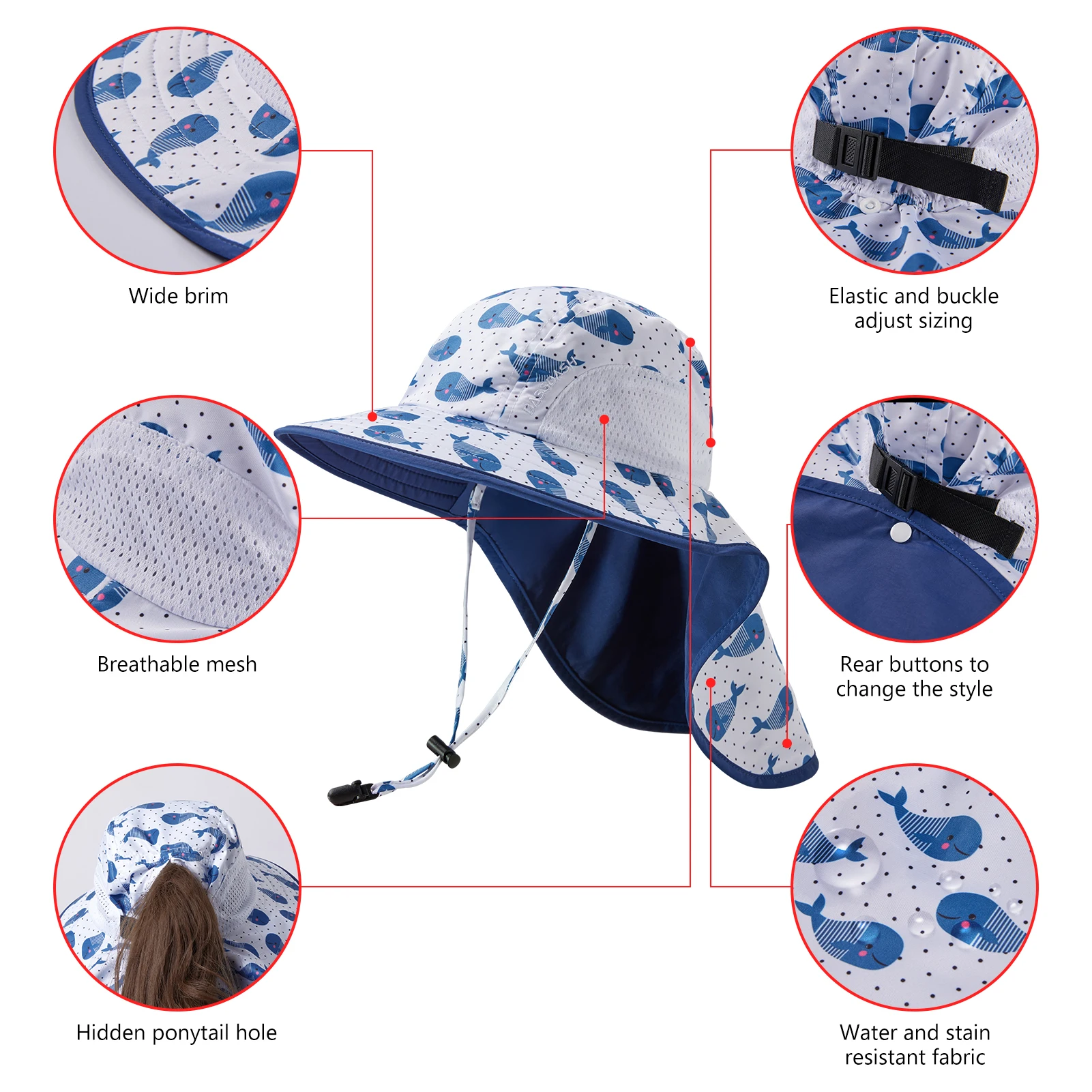 Tela clasificada UPF 50 + más ala ancha y solapa de cuello larga para protegerte contra los dañinos rayos UV desde diferentes ángulos