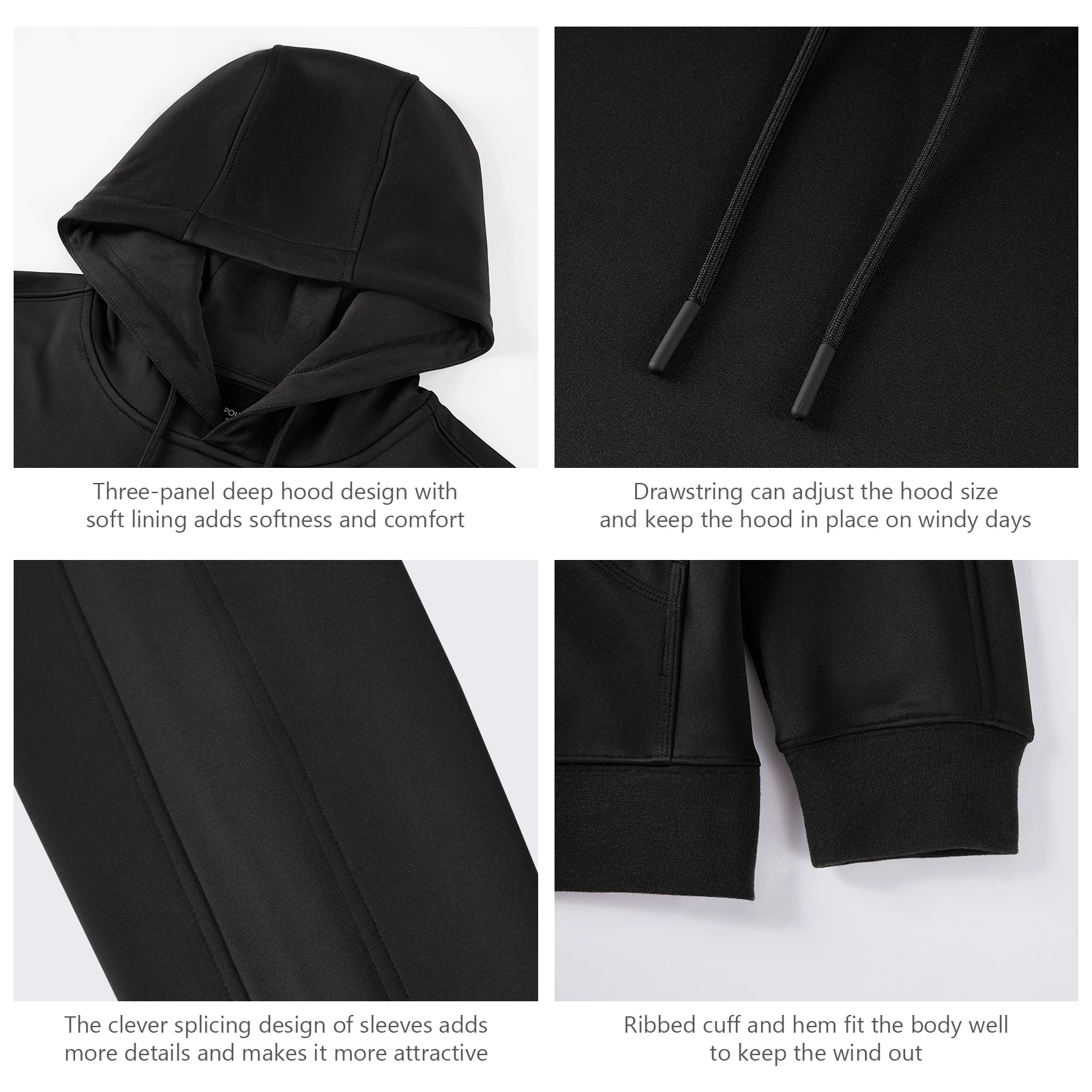 Capucha profunda de tres paneles y doble capa con un cordón para ajustar la Sudadera con capucha y agregar cobertura y calidez adicionales para la cabeza y las orejas en días ventosos o fríos