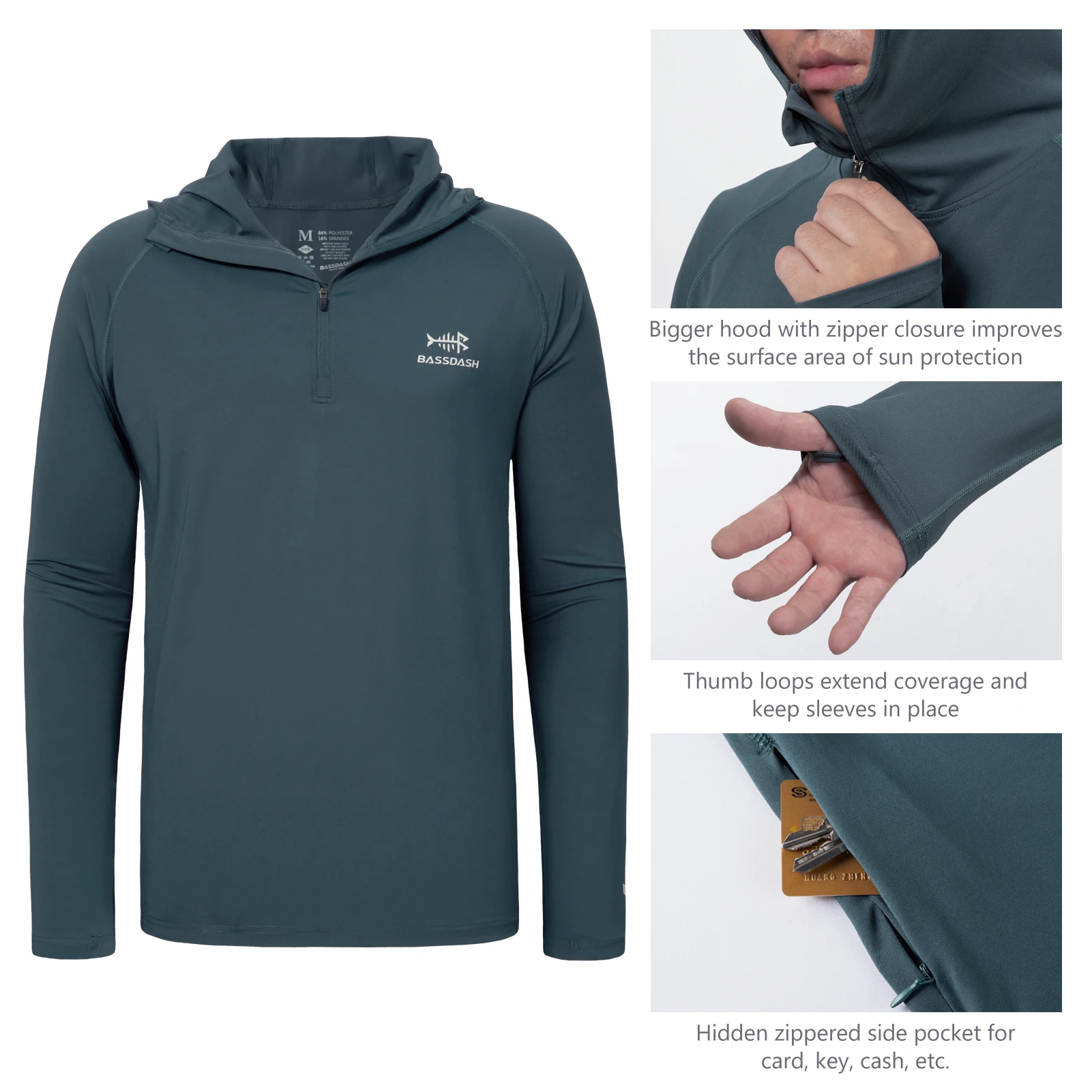 Con un diseño único de una cremallera extendida desde el pecho hasta la mitad de la capucha para ofrecer la máxima protección solar para su cuello, orejas y la parte inferior de su Cara al tiempo que reduce el resplandor general del reflejo del sol con forma especial de la capucha; Además, la capucha puede permanecer firmemente en su lugar en días de viento cuando La camisa está completamente cerrada. Arriba