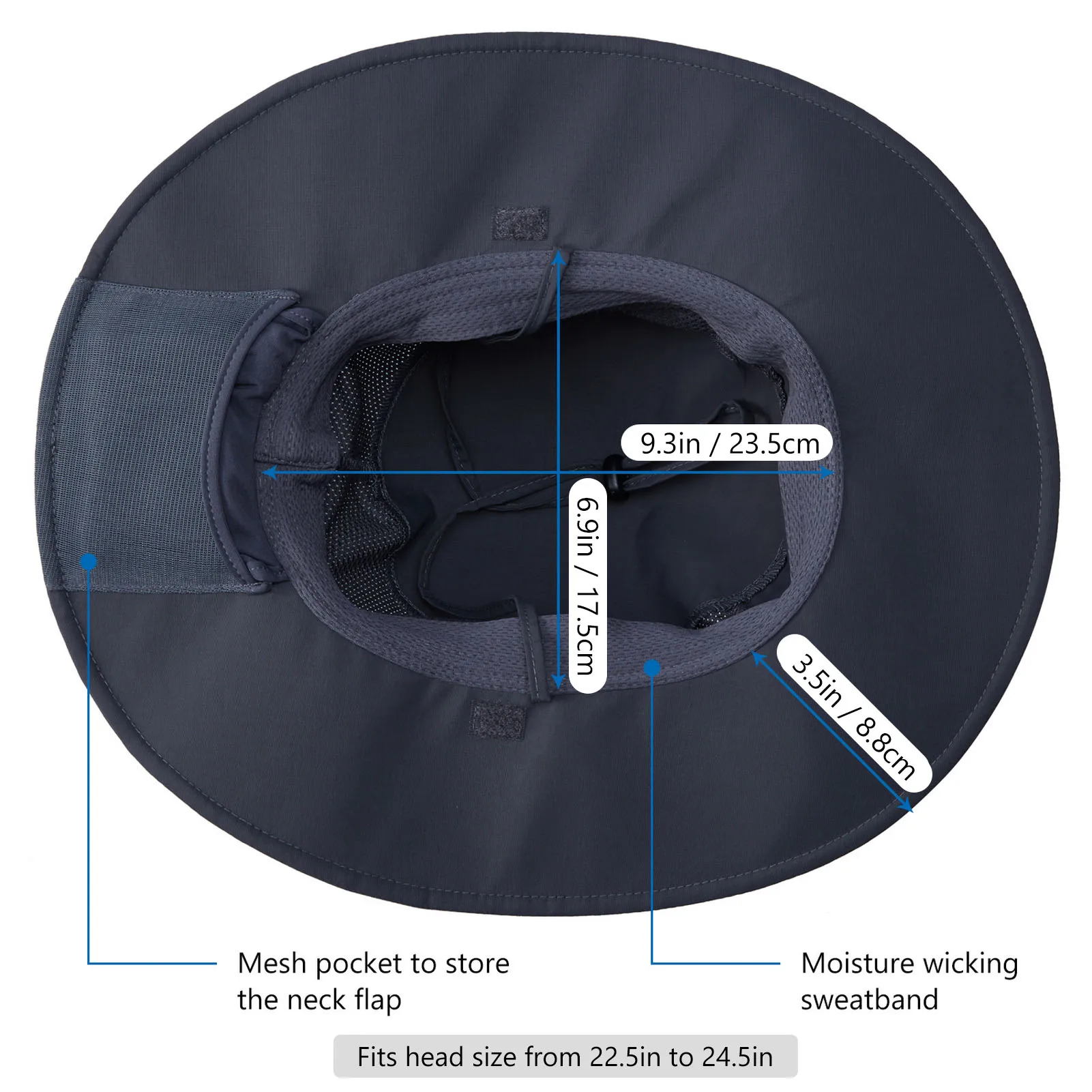Malla en los lados para mejorar la transpirabilidad y el flujo de aire; Banda para el sudor suave incorporada que absorbe la humedad