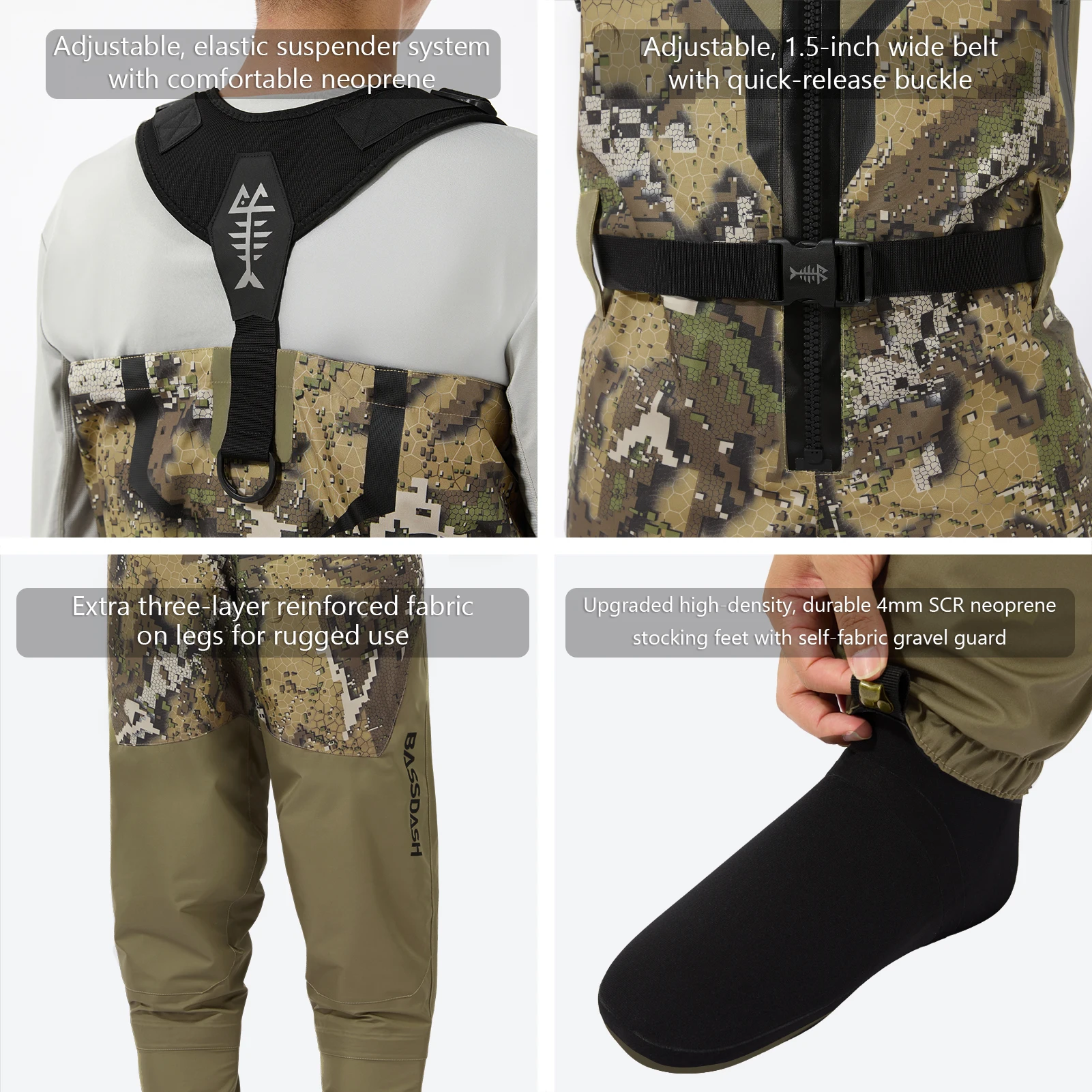 Cada par de guitanes Bassdash se somete a una prueba completa del tanque para garantizar una impermeabilidad del 100% y un rendimiento óptimo. Los envoltorios para hombres vienen con una bolsa de almacenamiento de malla y un kit de reparación, lo que facilita el mantenimiento y el almacenamiento.