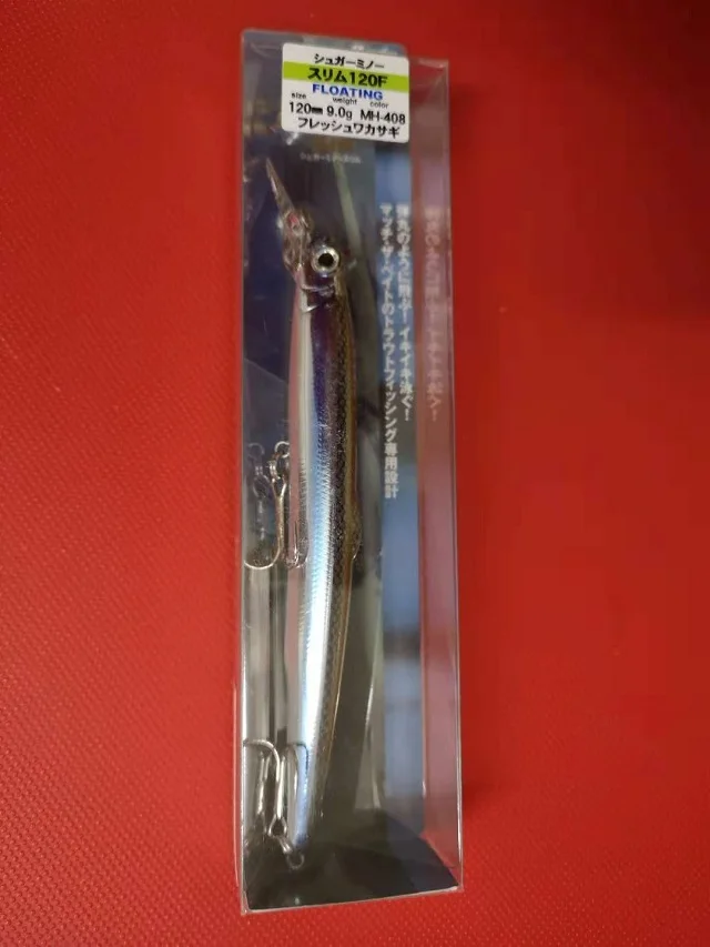 ¡Garantía auténtica, en stock! El japonés Bassday SUGAR SLIM120F Delgado flotante Mino mide 12 centímetros de largo y pesa 9 gramos. Se espera que se sumerja a una profundidad de aproximadamente 1 metro y está equipado con el sistema de transferencia del centro de gravedad de la MZ-19. Tiene un buen rendimiento de lanzamiento y un color brillante, lo que lo hace muy adecuado para la pesca de cócteles, lubinas y otros peces.