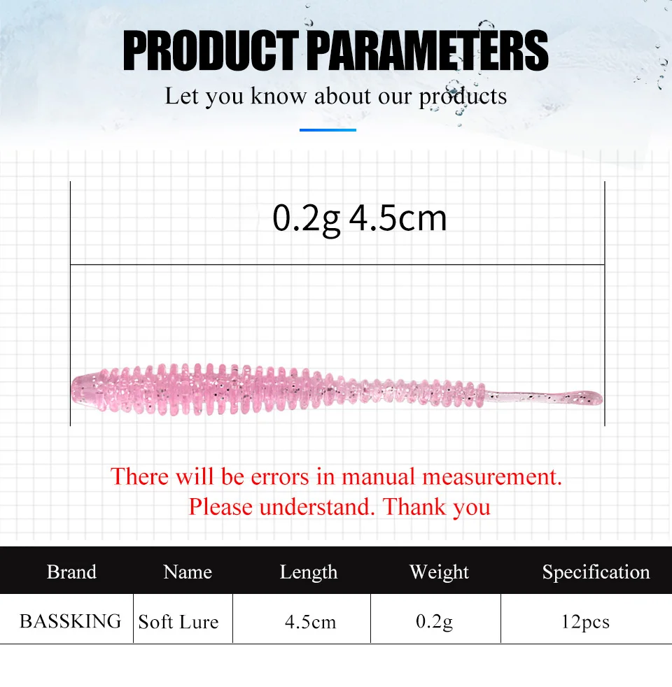BASSKING 12 Uds Rockfish cebo suave 4.5cm 0.4g pequeño señuelo de pesca cebos de gusano Leurre Peche Isca Artificias cebo Pesca Swimbait