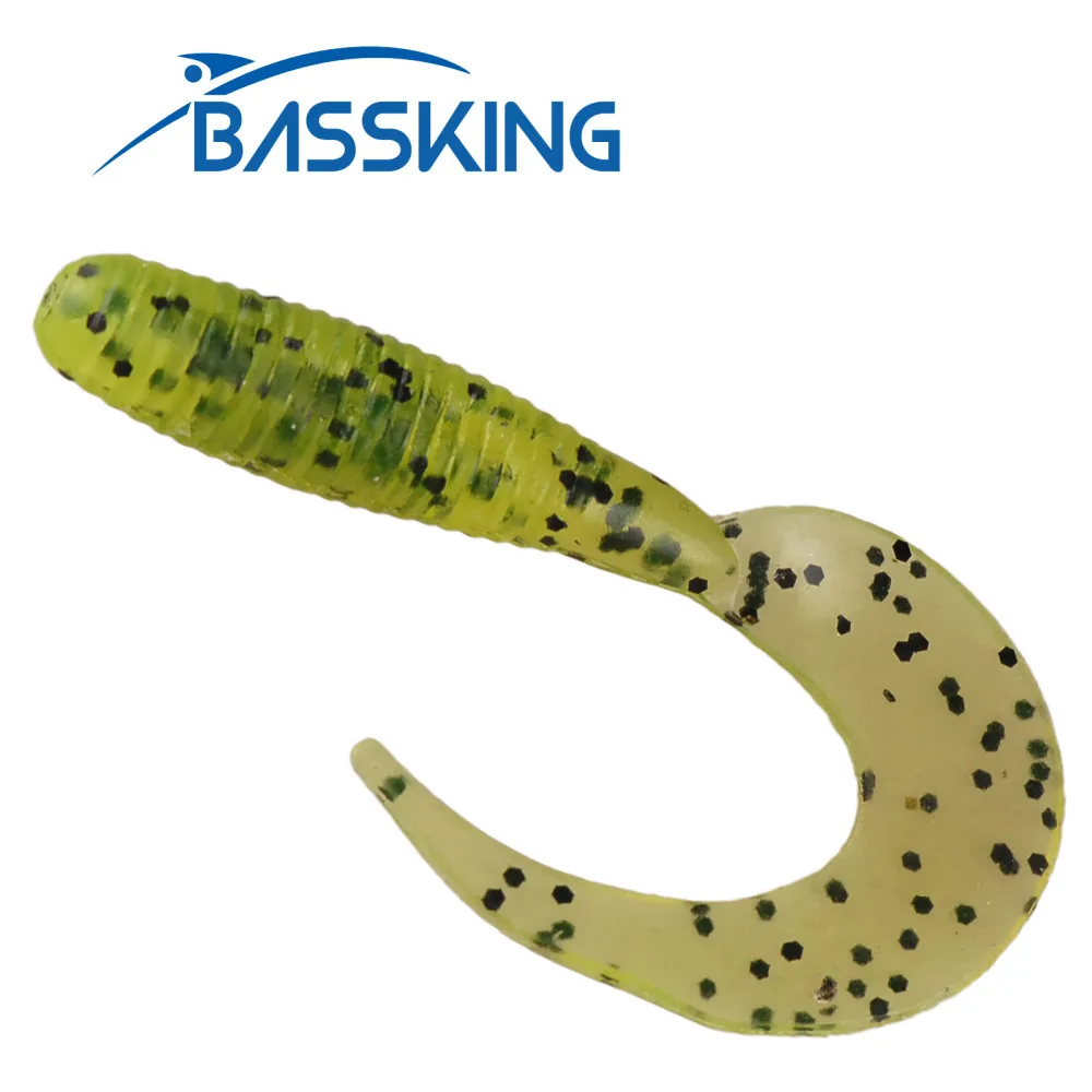 BASSKING-Cebo blando de silicona Artificial, cebo de cola larga de 50mm y 1,8g, para lubina, Lucio, Swimbait, Wobblers de pesca en agua salada, 8 piezas