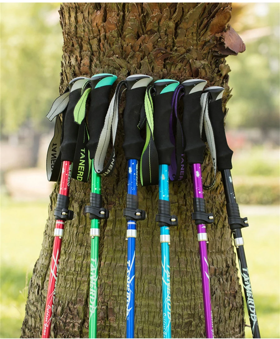 Bastón antigolpes ultraligero para senderismo, bastones ajustables de 4 secciones, de aleación de aluminio, plegable