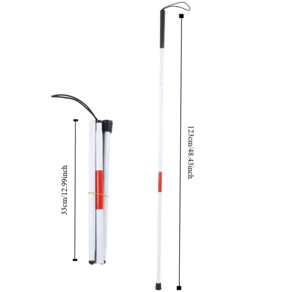 Bastón ciego plegable duradero, bastón reflectante de aleación de aluminio blanco y rojo, bastón antideslizante con discapacidad Visual - imagen 5