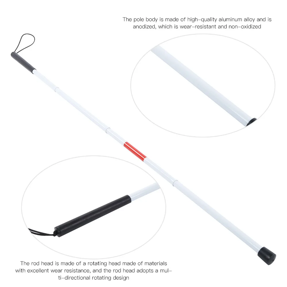 Bastón ciego plegable duradero, bastón reflectante de aleación de aluminio blanco y rojo, bastón antideslizante con discapacidad Visual - imagen 4