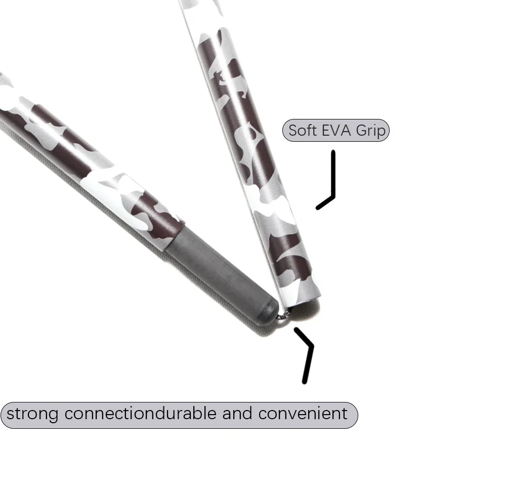 La longitud de la punta y la cubierta de goma es la misma, y es sólida y duradera, por lo que no se caerá fácilmente. Nuestro bastón de escalada es suave y fuerte, con un agarre fuerte, lo que brinda una experiencia de agarre extraordinaria para cada conquista.