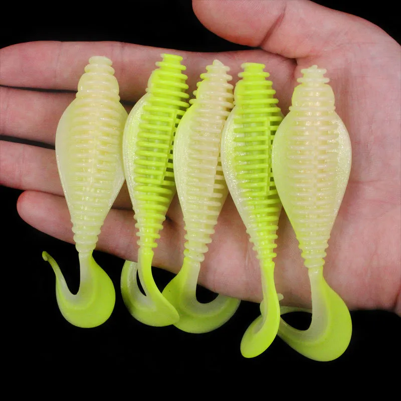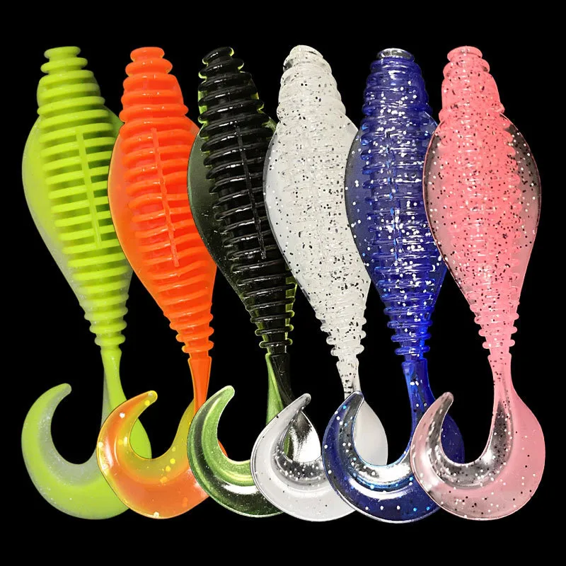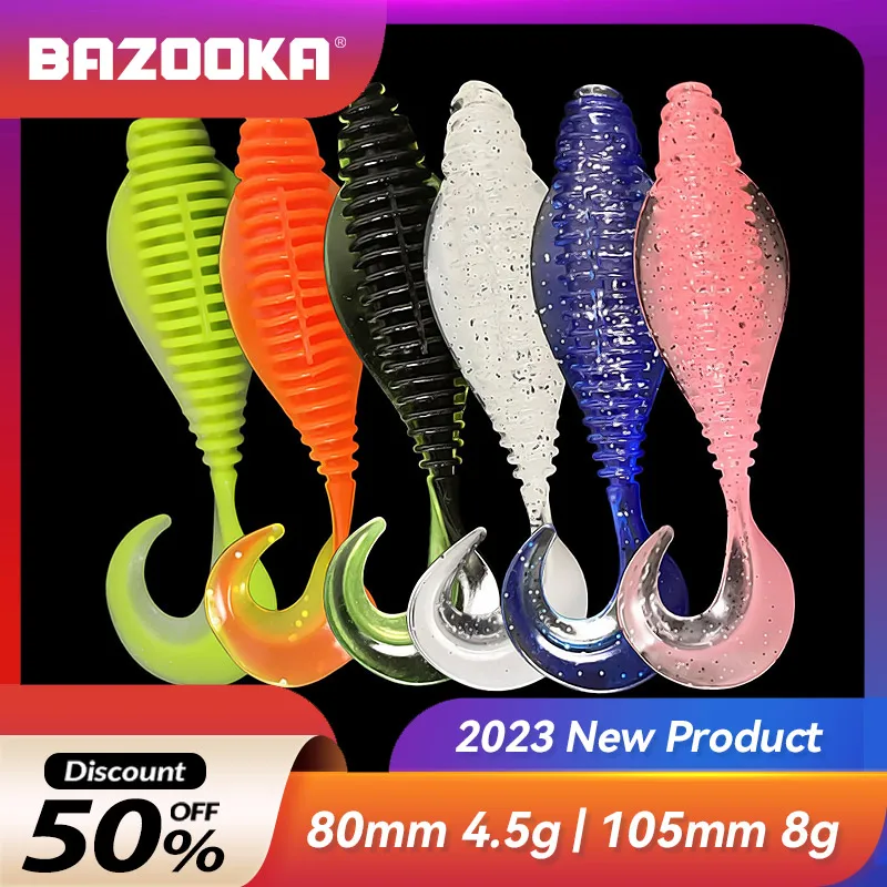 Bazooka 6 uds señuelo suave de pesca cebo rizado de silicona gusano Wobblers Jig Shad Jigging carpa trucha Lucio lubina Swimbait aparejos de Pesca