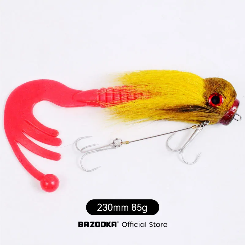 Bazooka, cebo de ratón grande, señuelo de pesca de Lucio de agua salada, Pluma de PVC, pájaro, gancho de acero, cola de silicona, señuelo suave, lubina, ciervo, pelo, rata, hundimiento, cebos de invierno