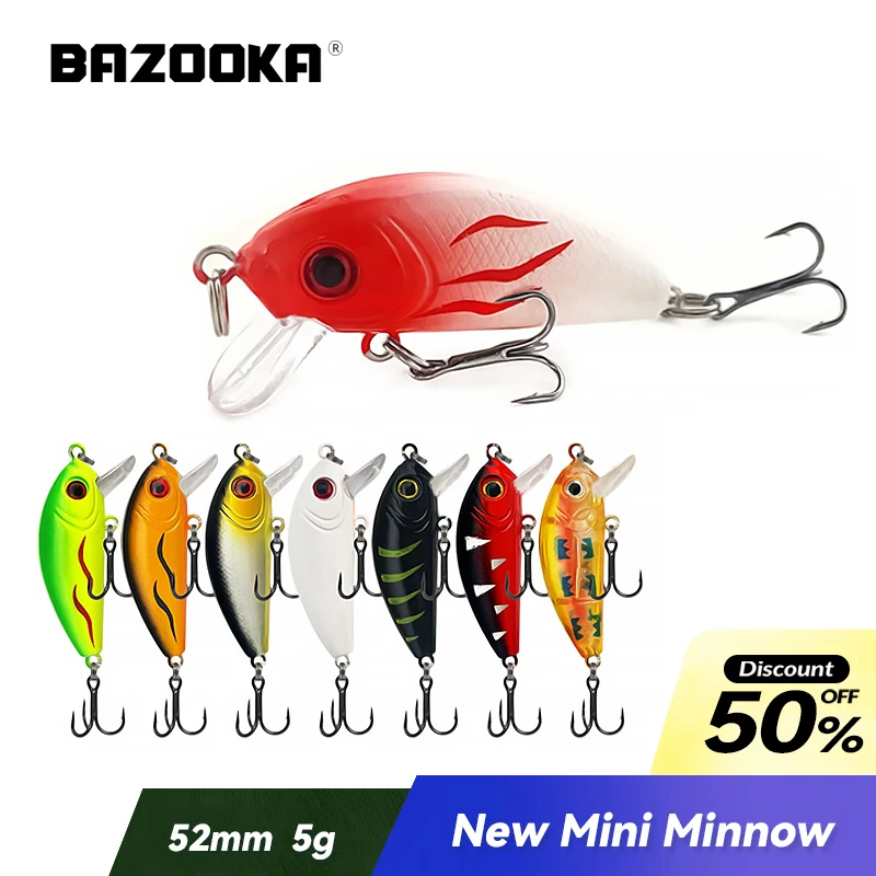 Bazooka 52mm 5g Mini Jerkbait Minnow señuelo de Pesca duro flotante Topwater hundimiento Swimbait perca lubina Lucio Pesca cebos de invierno