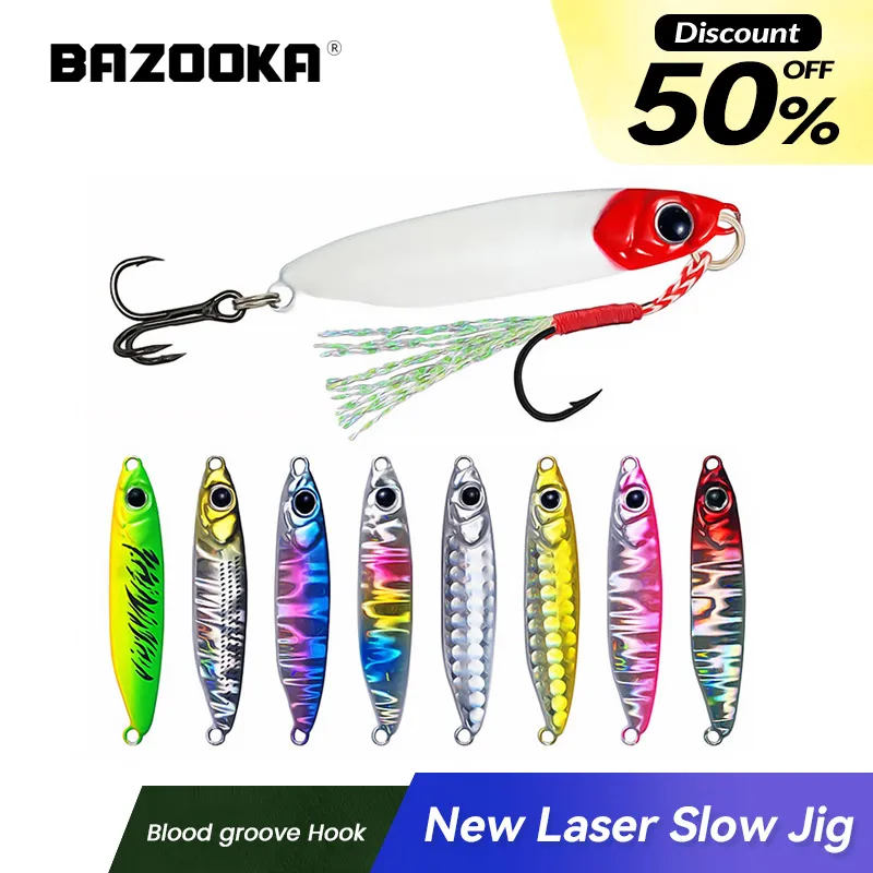 Bazooka Slow Jig Jigging Metal señuelo de pesca cuchara de plomo duro hundimiento Artificial Trolling Barco de agua salada Lucio cebo de invierno