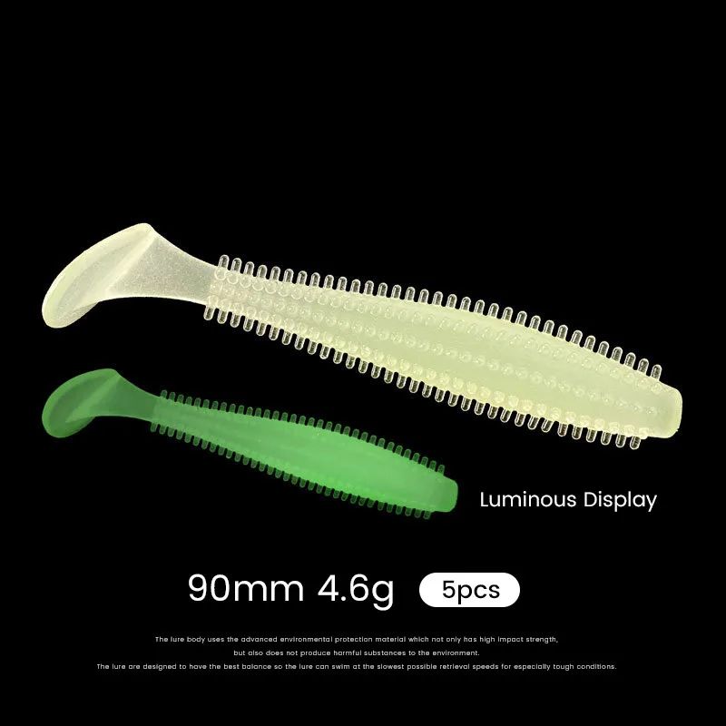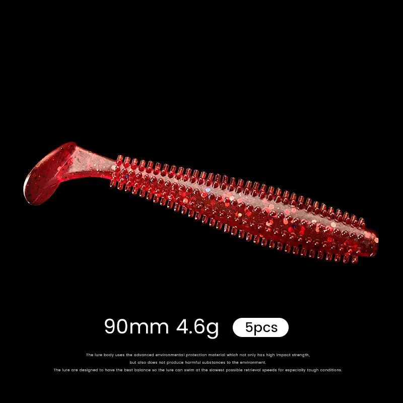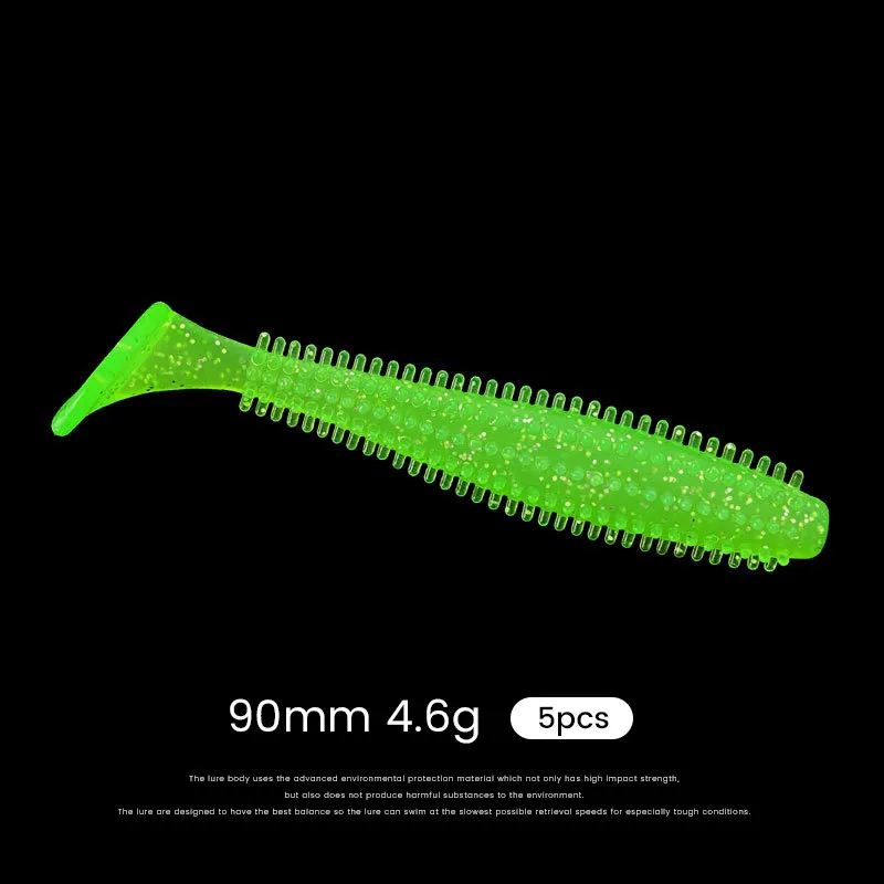 5 piezas Bazooka 90mm 4,6G cebo suave señuelo de pesca cola en T gusano fácil Shiner Shad carpa Swimbait silicona trucha bajo Vibro Thorn plástico