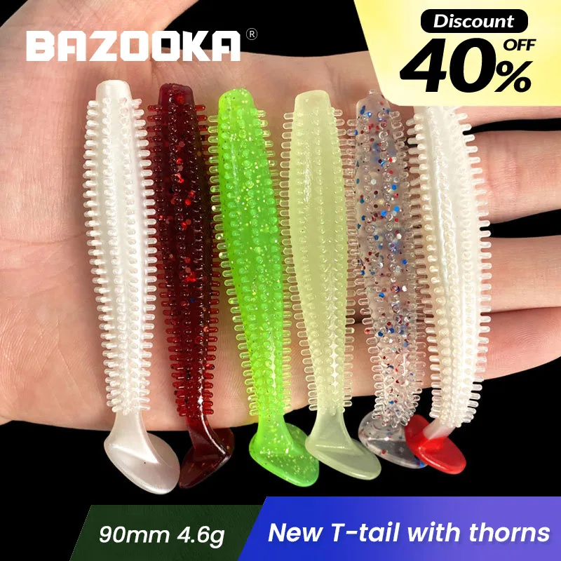 5 piezas Bazooka 90mm 4,6G cebo suave señuelo de pesca cola en T gusano fácil Shiner Shad carpa Swimbait silicona trucha bajo Vibro Thorn plástico