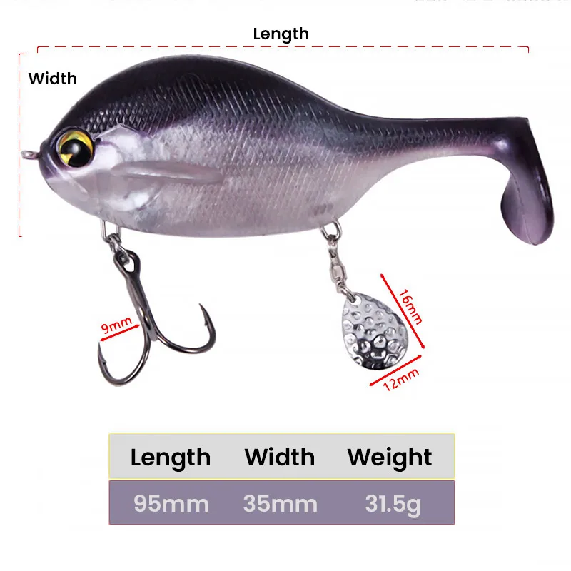 5. La cola de paleta larga y plana hace que el señuelo de pesca nade vívidamente en el agua, mejor para atraer a los peces objetivo.