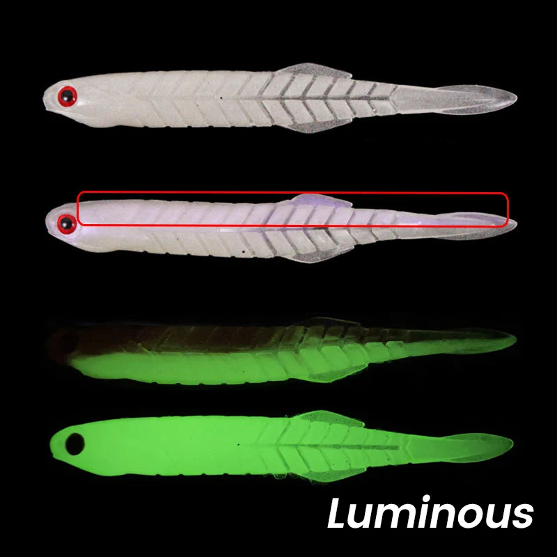 Bazooka-señuelo suave luminoso para pesca, señuelo suave para hundirse, Jigging de roca articulado, Shine, gusano, orilla, lubina, Lucio, trucha, Pesca, cebo de invierno