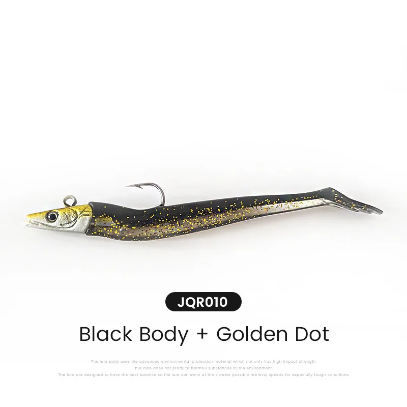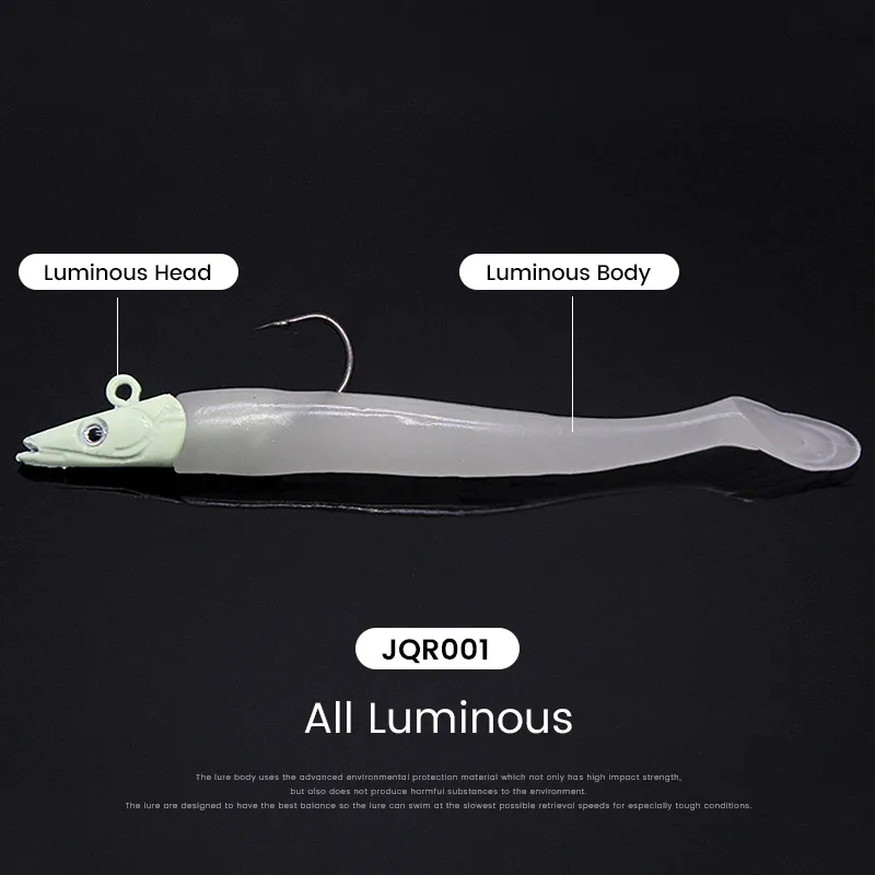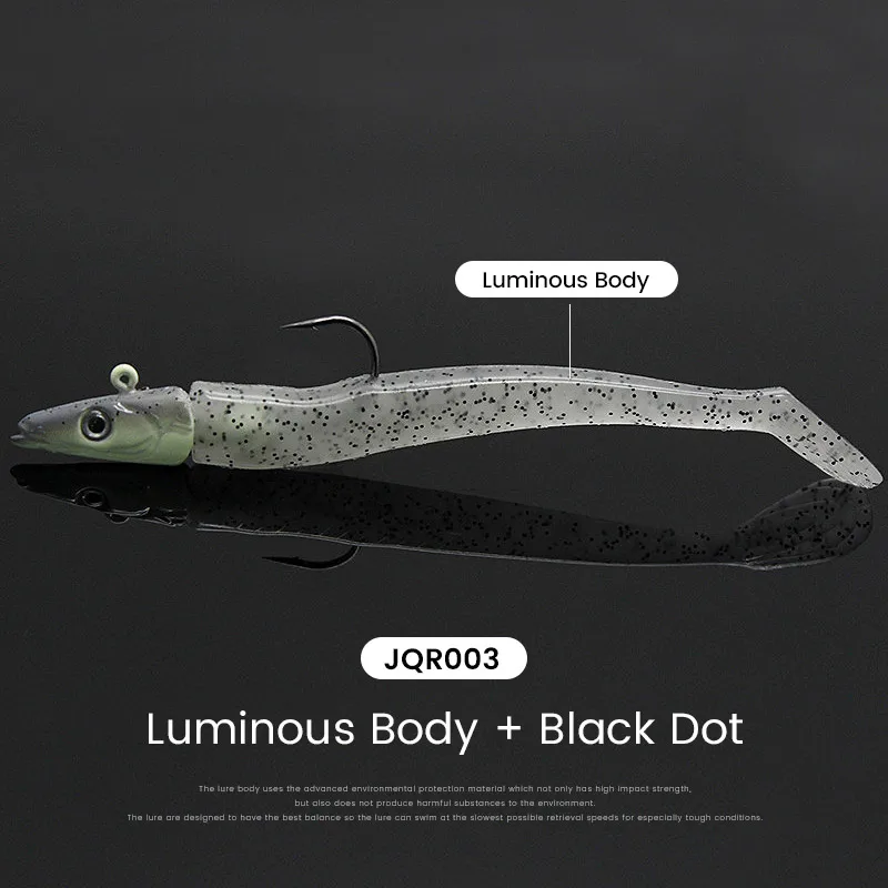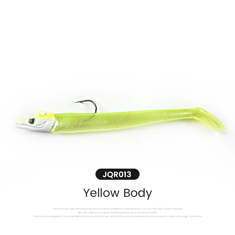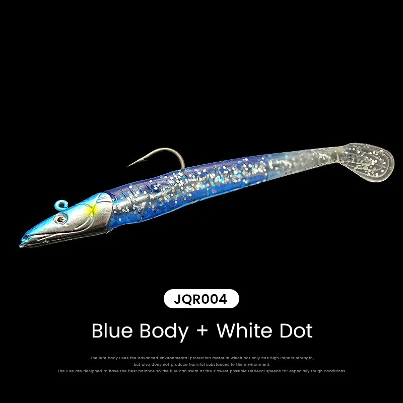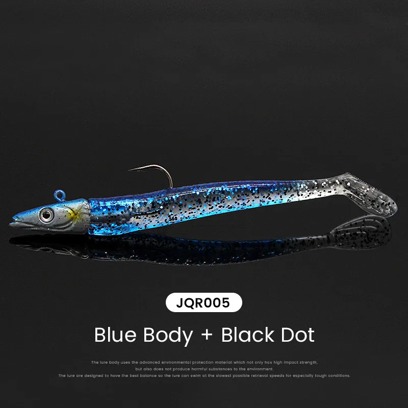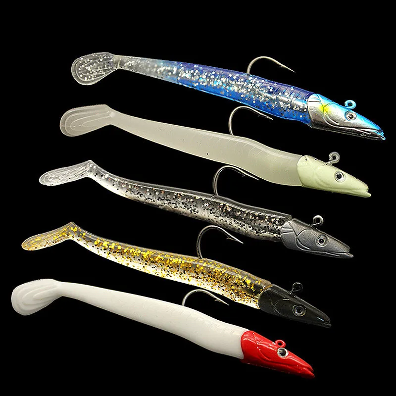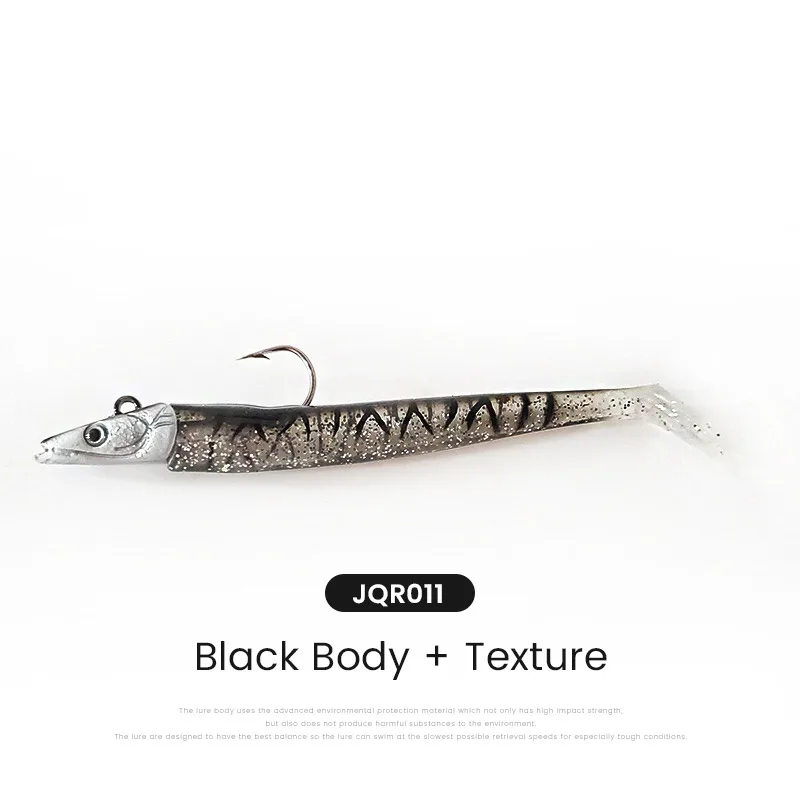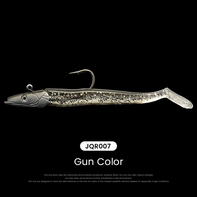 El anzuelo con cabeza de plomo y el cebo blando de PVC son buenos para disparos largos.