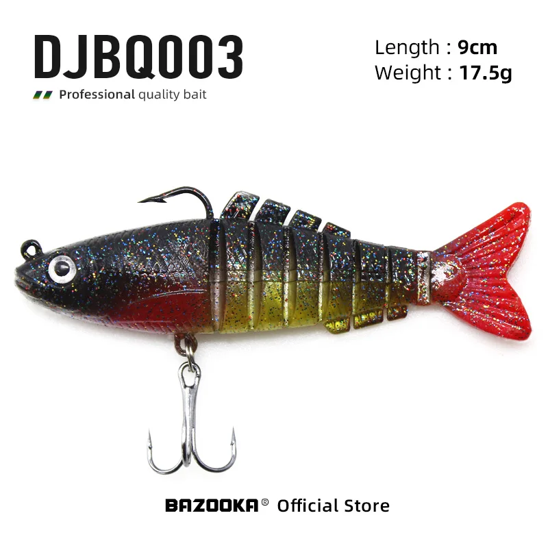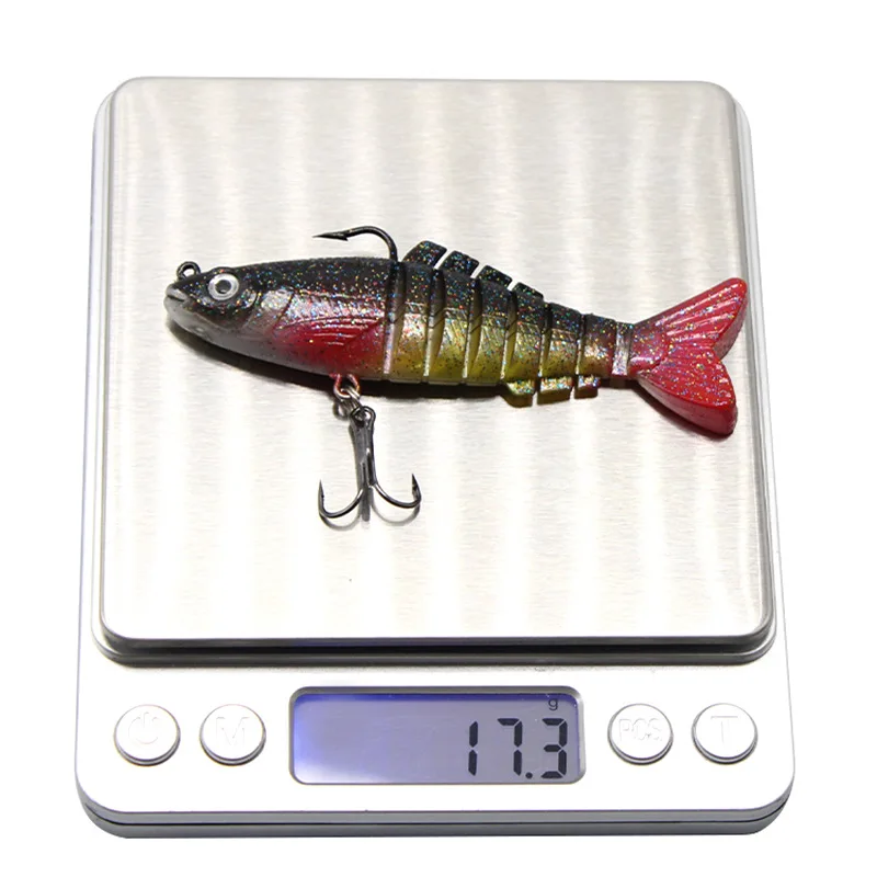 (1) S-Swimming Motion a cualquier velocidad: las piezas del cuerpo se conectan con telas textiles permiten que estos señuelos se muevan de lado a lado como nadaría un pez real.