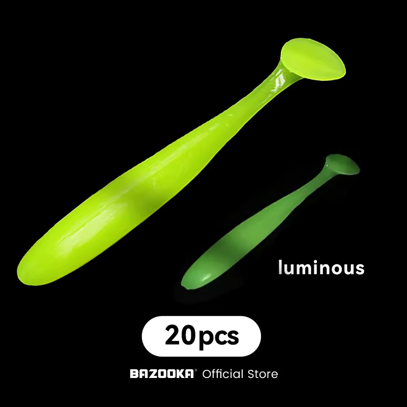 Bazooka Señuelo suave de pesca, cebo de silicona de 100mm, gusano de cola en T, fácil brillo, Pesca en el mar, Shad Wobblers, trucha, Lucio, lubina, invierno