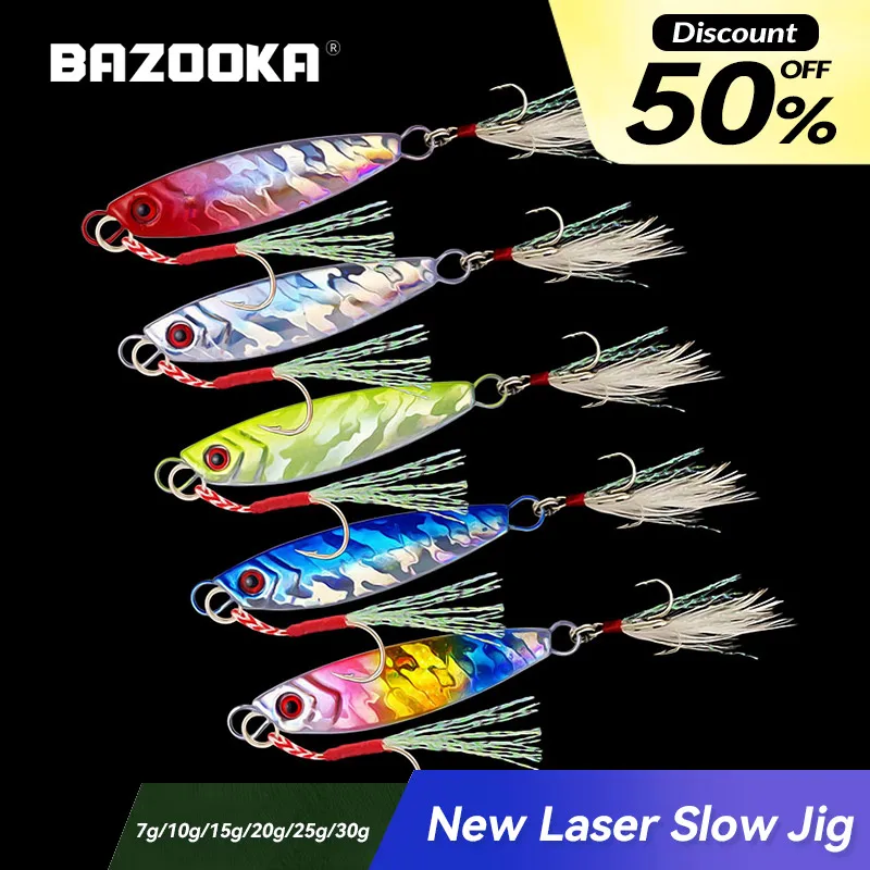 Bazooka Slow Jig señuelo de pesca cuchara de Metal Jigging hielo plomo duro hundimiento láser Artificial agua salada barco Bass Pike Shore invierno