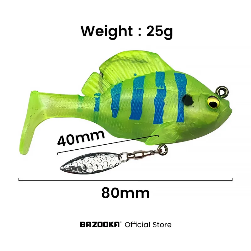 Altamente visible con excelente acción de natación, un cebo favorito para muchos depredadores, incluidos lubina, bagre y calamar.