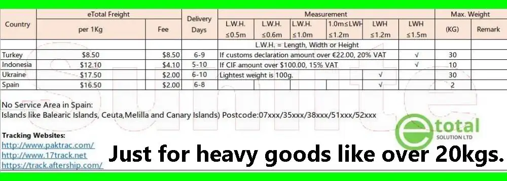 1. Si eligeAliExpress protector de envío: Rusia, Ucrania, Bielorrusia y Chile, peso inferior a 2kg y España inferior a 500g. El monto Total del pedido es inferior a 5,00 $ (10,00 para España inferior a $).