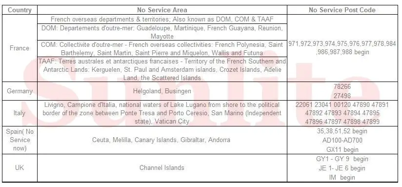 2. Si eligeEnvío Estándar de AliExpress:Si pesa más de 2kg, la longitud del paquete es inferior a 150cm: Austria, Bahrain, Bélgica, Bután, Bulgaria, Cyprus, Dinamarca, Fiyi, Finlandia, Francia, Alemania, Grecia, Hungria, India, Irlanda, Japón, Jordania, Kuwait, Holanda, malasia, Maldivas, Mongolia, Países Bajos, Noruega, Omán, Pakistán, Filipinas, Arabia Saudita, Singapur, Islas salomonas, Soma Li, Corea, Suecia, Suiza, Tailandia, Emiratos Árabes Unidos, Vietnam, Pakistán, Chile, República Checa.