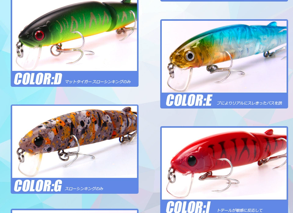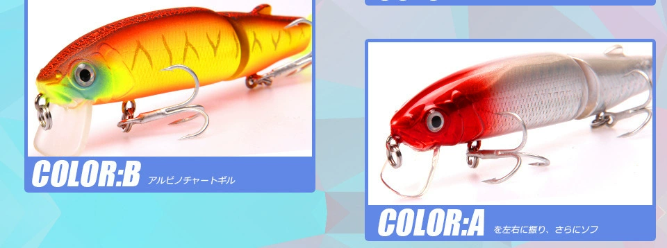 1. Rodamiento de 2 ganchos triples fuertes: está armado con ganchos de rodamiento, mayor potencia, duradero, agua de mar dulce universal.2.Piel de pez de simulación (laser): el diseño de la piel de pez de simulación la hace más atractiva para los peces grandes.3.Anillos bicíclicos más fuertes: fortalecen el doble círculo y aumentan la resistencia al tirón.Ojos de pez 4.3D: ojos de simulación 3D, grandes y brillantes, más tentadores y reflectantes.5.Embalaje del producto: cada cebo está empaquetado en una bonita caja de PVC al por menor.