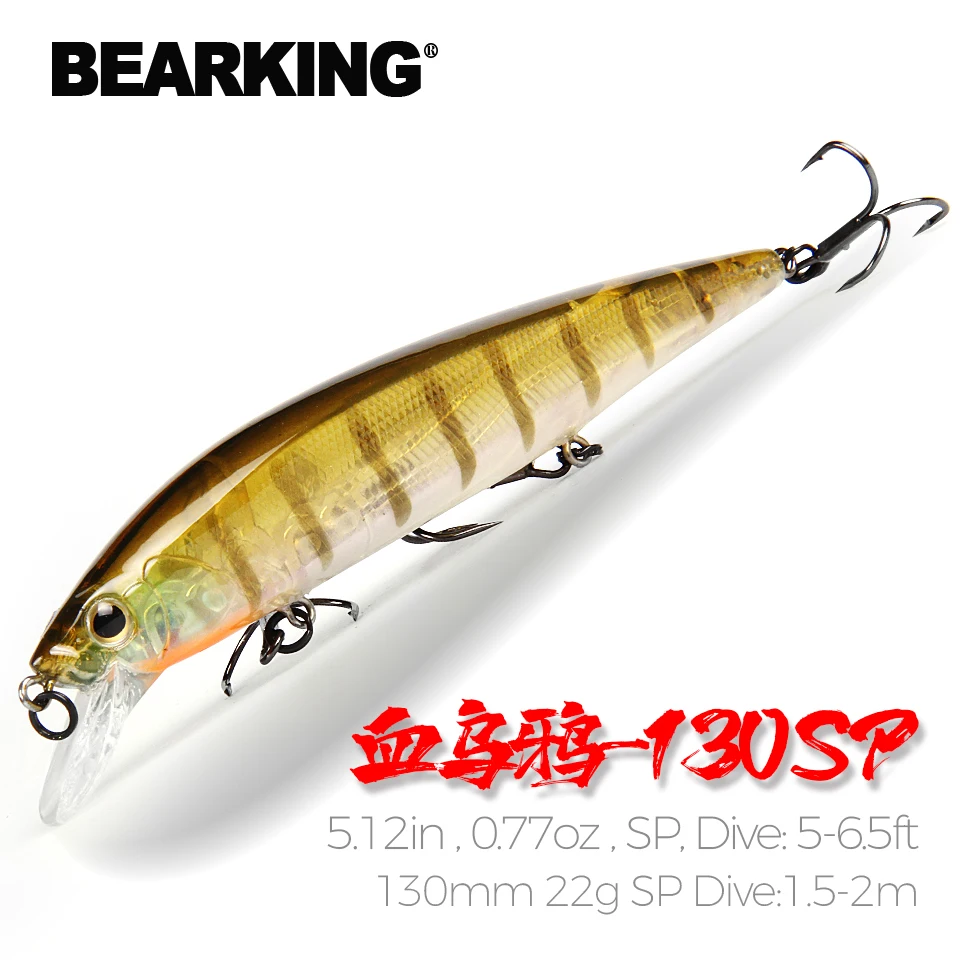 BEARKING 130mm 22g SP Señuelos de pesca calientes, colores surtidos, manivela de pececillo sistema de peso de tungsteno modelo wobbler cebo de manivela