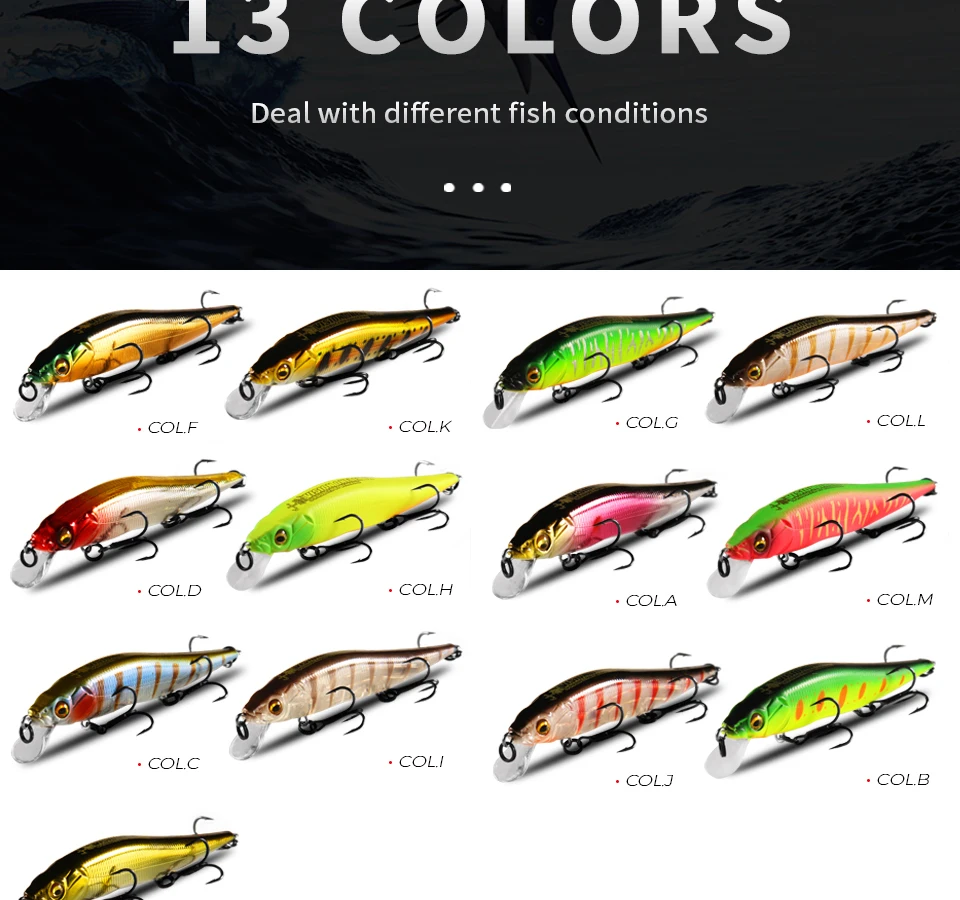 6.Los ojos detallados se adhieren a mano después de una aprobación. inspección de control de calidad del cuerpo del señuelo.