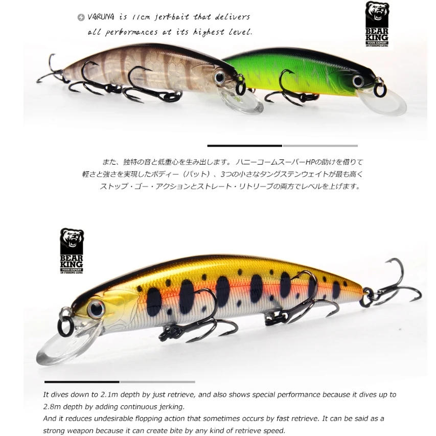 BEARKING gran oferta 4 unids/set 110mm 17g buceo 1,5 m Señuelos de pesca superiores cebos duros de calidad aparejos de pesca Wobbler de acción profesional