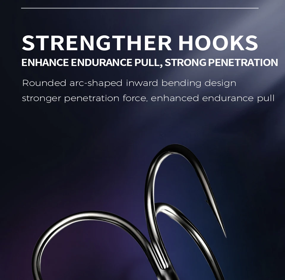 1. Rodamiento de 2 ganchos triples fuertes: está armado con ganchos de rodamiento, mayor potencia, duradero, agua de mar dulce universal.