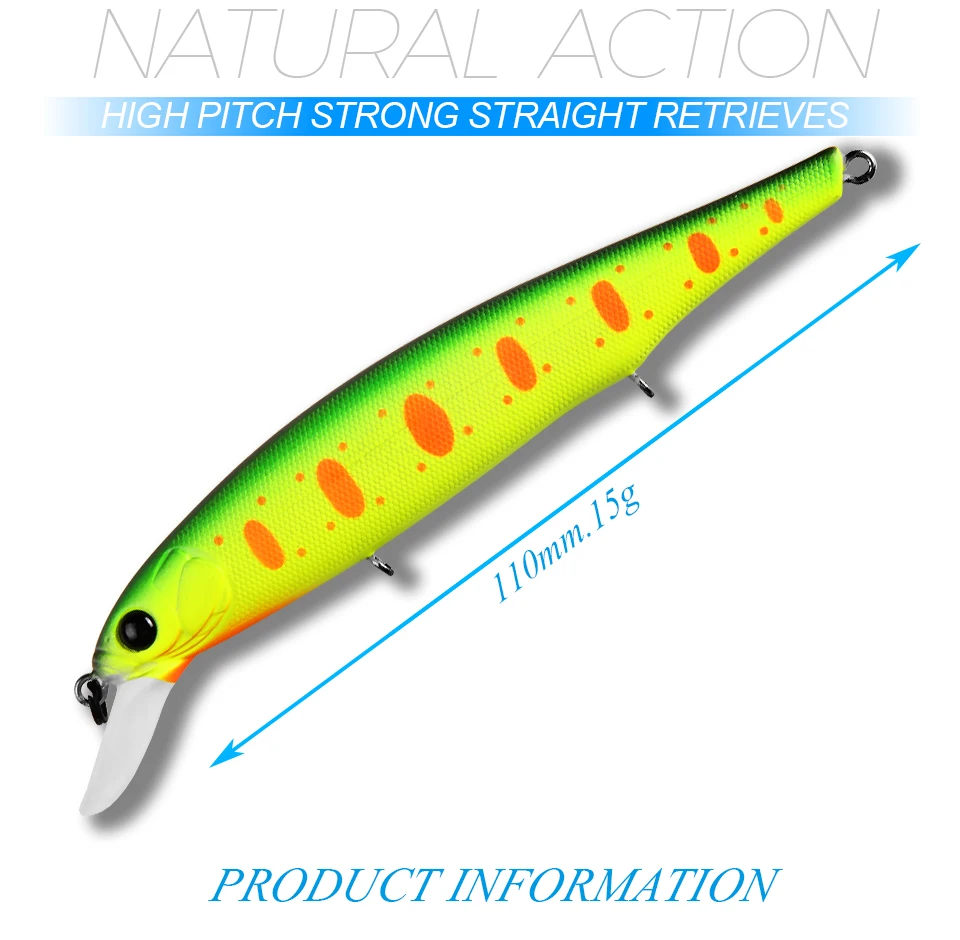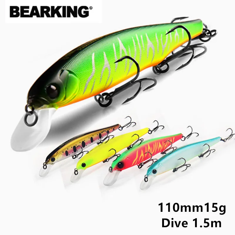 Bearking M111 Señuelos de pesca de acción perfecta, 110 mm/15 g, 11 cm 15 g Buceo 1,5 m Sp Minnow 12 colores coloridos diferentes