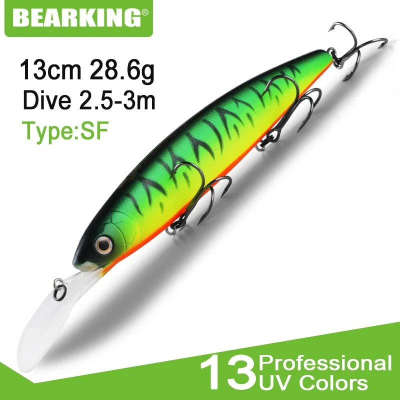 BEARKING-señuelo de pesca láser, cebo Artificial duro, ojos 3D, 13cm, 28,6g, Wobblers de pesca, buceo, 2,5 m-3m, Crankbait