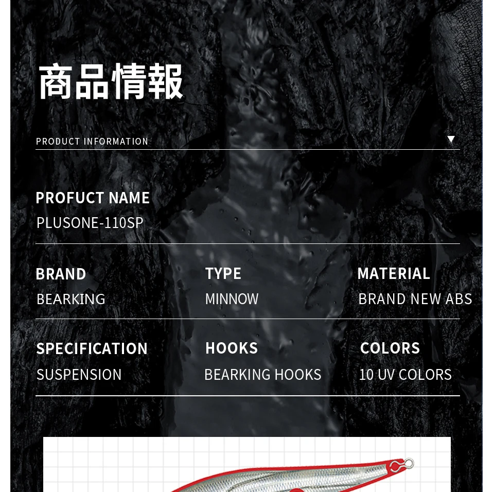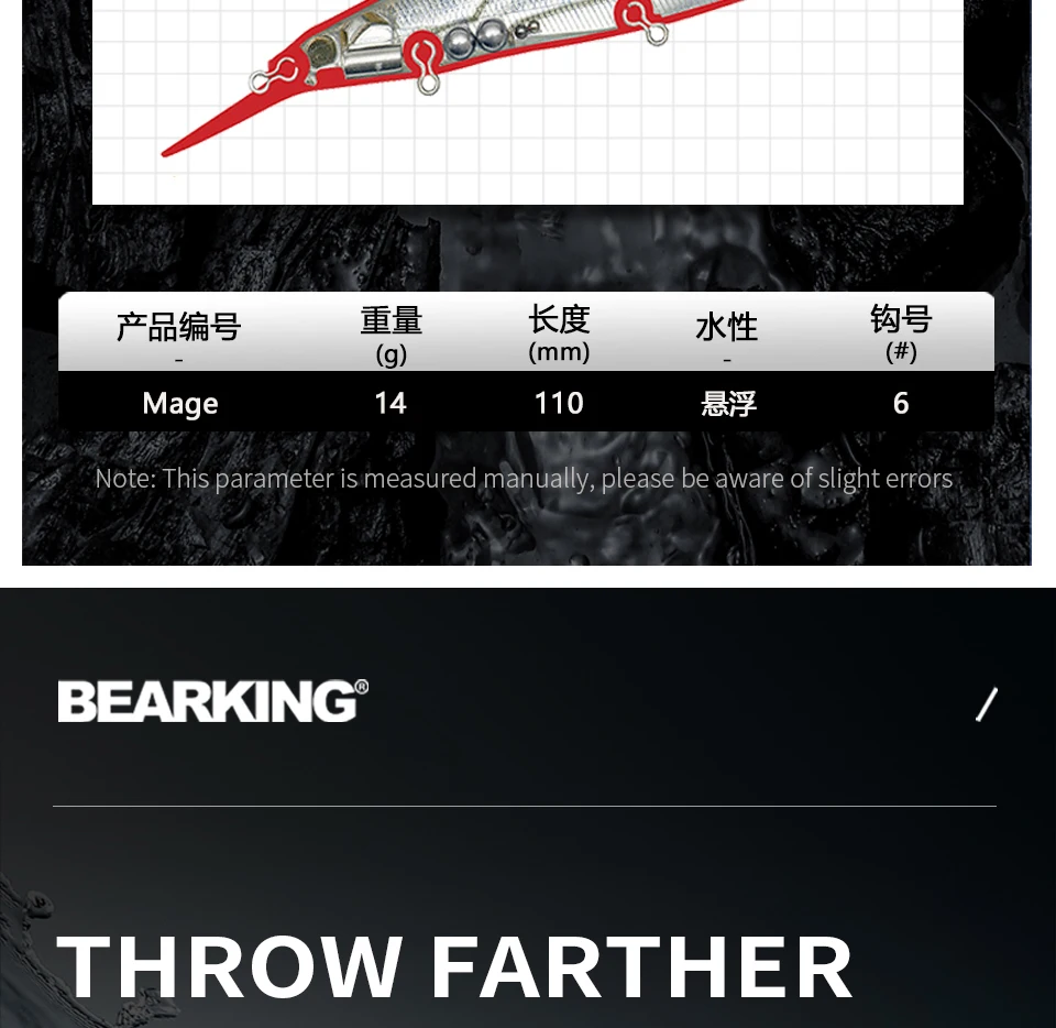 5. Embalaje del producto: Cada cebo se embala en una bonita caja de PVC.6. Regalo: Cada cebo incluye una pegatina de aparejos de pesca.7. Todos los cebos son puros hechos a manoDetalles del producto:Marca: BearkingModelo de señuelo:Tipo de señuelo: Jerkbait-SPPeso del señuelo: 14gLongitud del señuelo: 110mmGanchos: está armado conNegro3*2 ganchos StrongBearking