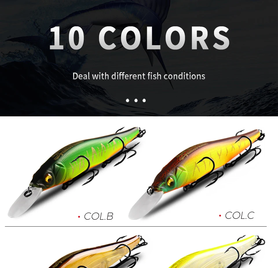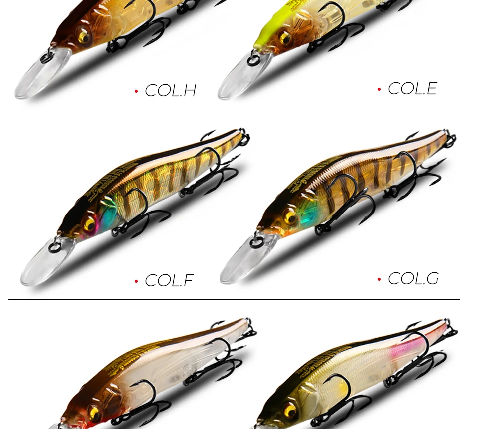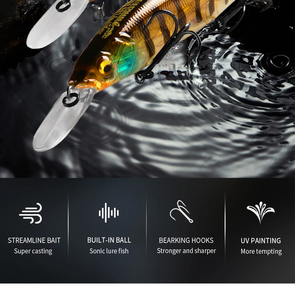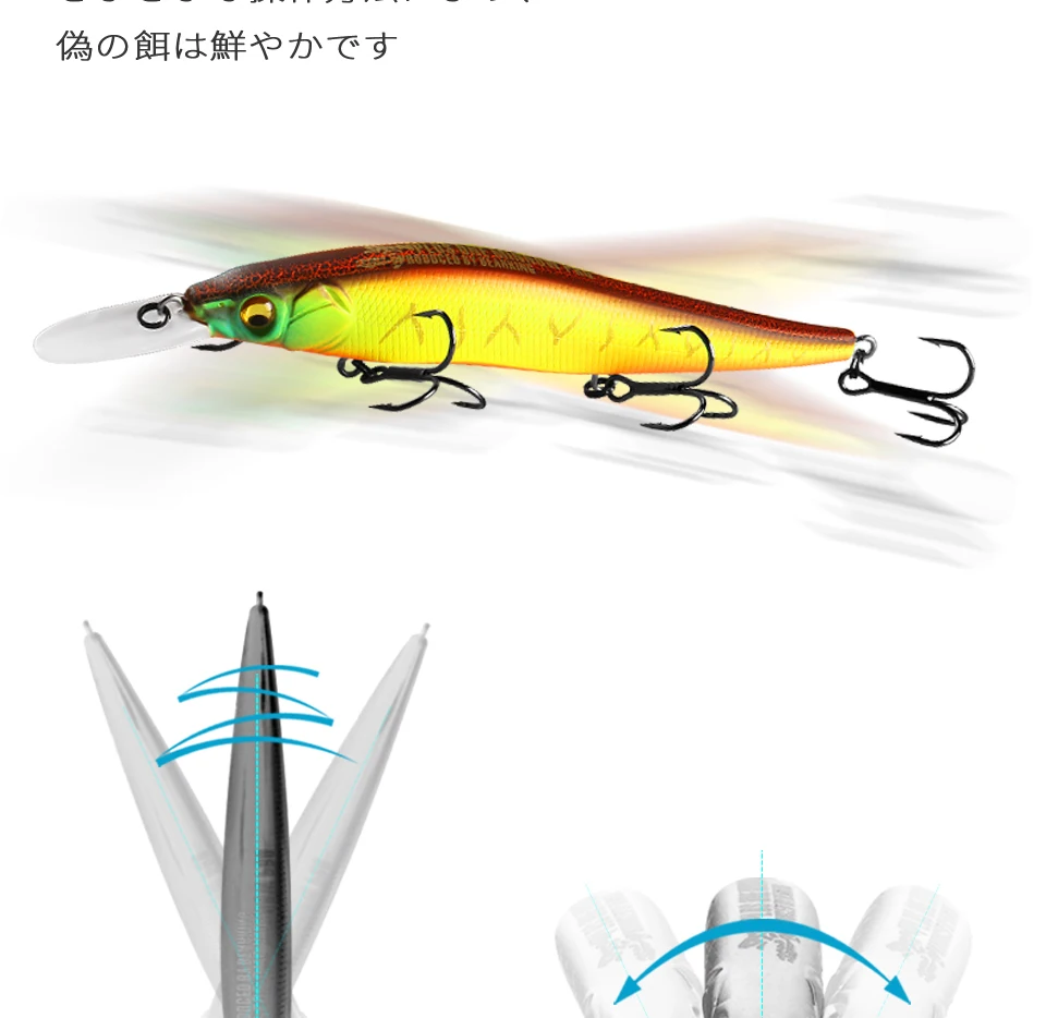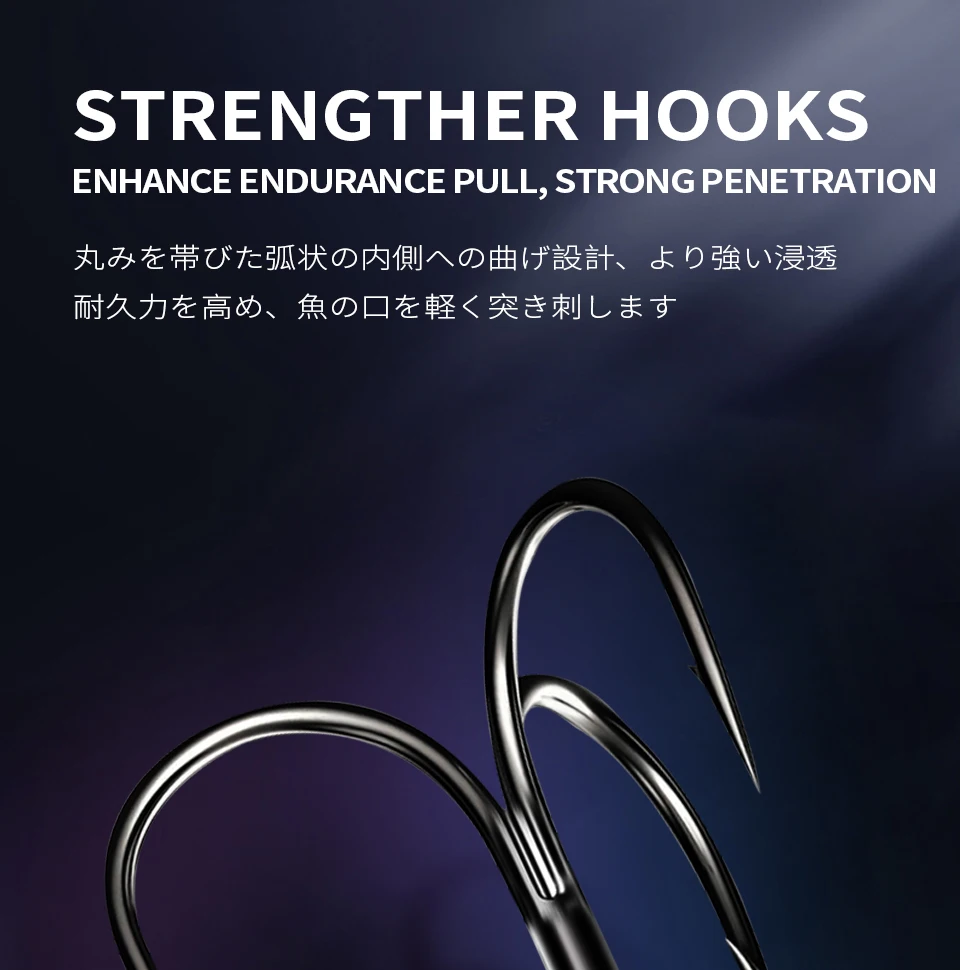 1,3Ganchos de 2 ": hechos con tres ganchos. Este diseño ayuda a aumentar la proporción de captura cuando los peces están en un estado de ánimo reactivo y no están dispuestos a alimentarse agresivamente.