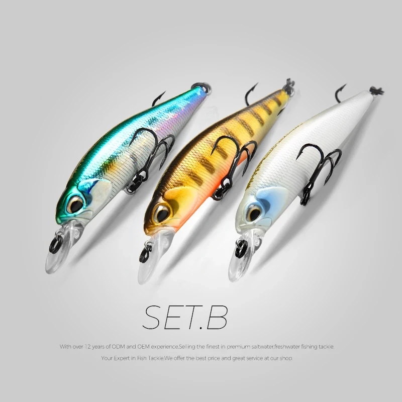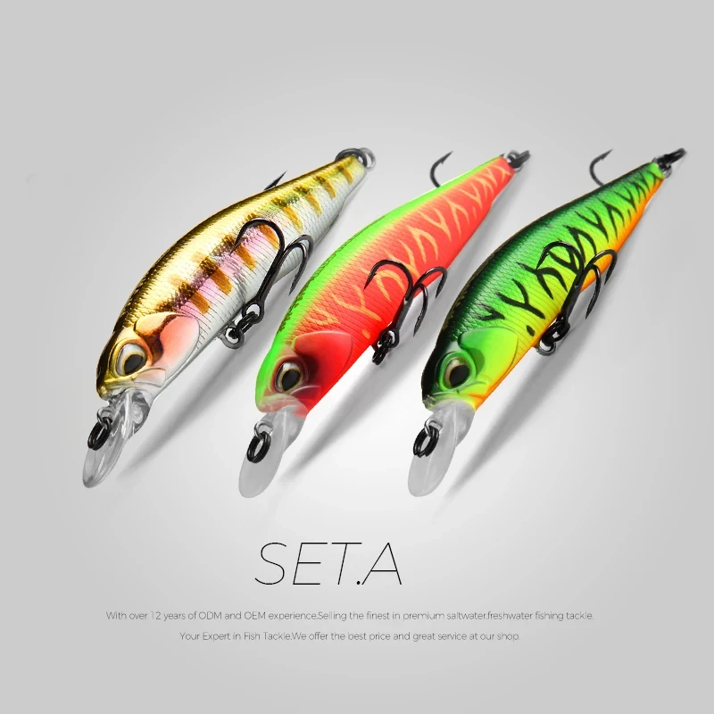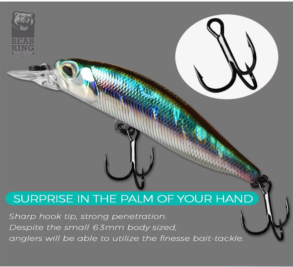BEARKING-SEÑUELOS DE pesca profesional, 3 piezas por juego, 63mm, 5g, colores UV, sistema de imán de manivela minnow, modelo wobbler, cebo de manivela