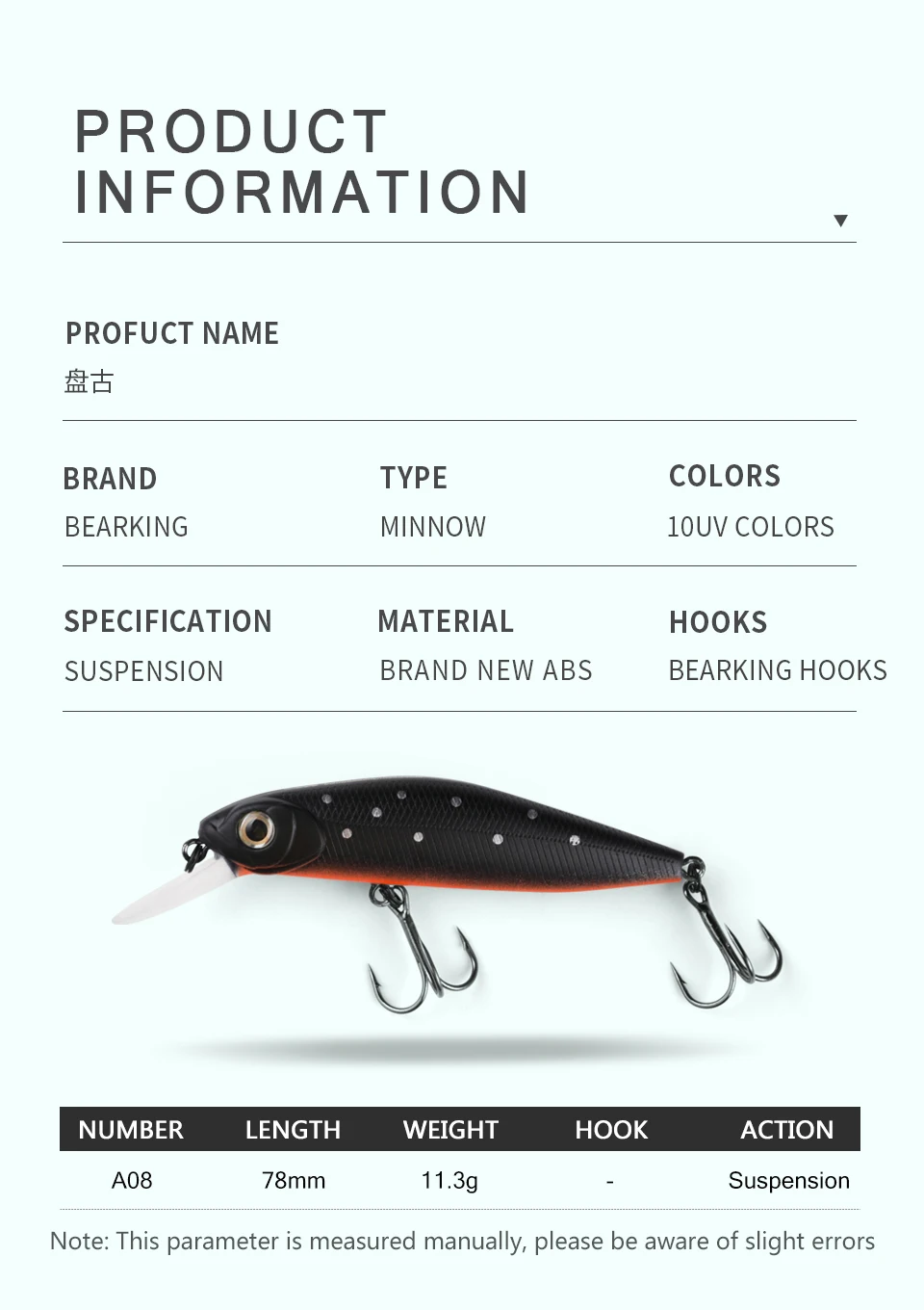 BEARKING-Señuelos de Pesca con sistema de tungsteno, aparejos de pesca de calidad, 78mm, 11,3g, 1,3-1,7 m SP