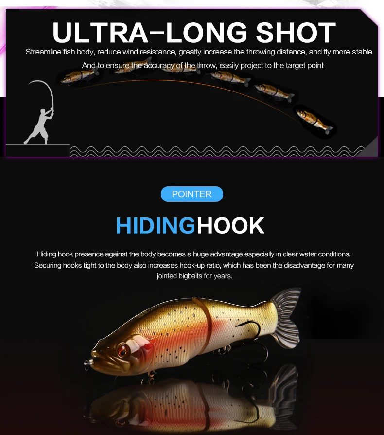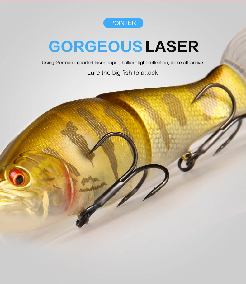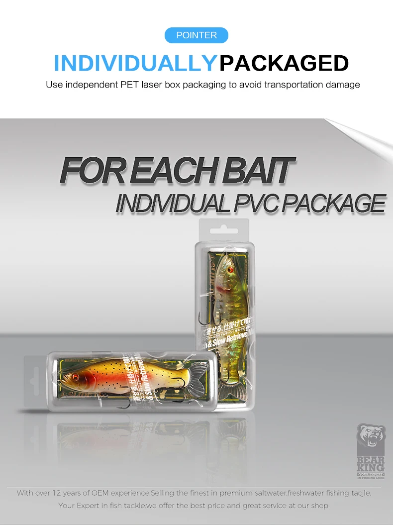 1. Rodamiento de 2 ganchos triples fuertes: está armado con ganchos de rodamiento, mayor potencia, duradero, agua de mar dulce universal.2.Piel de pez de simulación (laser): el diseño de la piel de pez de simulación la hace más atractiva para los peces grandes.3.Anillos bicíclicos más fuertes: fortalecen el doble círculo y aumentan la resistencia al tirón.Ojos de pez 4.3D: ojos de simulación 3D, grandes y brillantes, más tentadores y reflectantes.5.Embalaje del producto: cada cebo está empaquetado en una bonita caja de PVC al por menor.