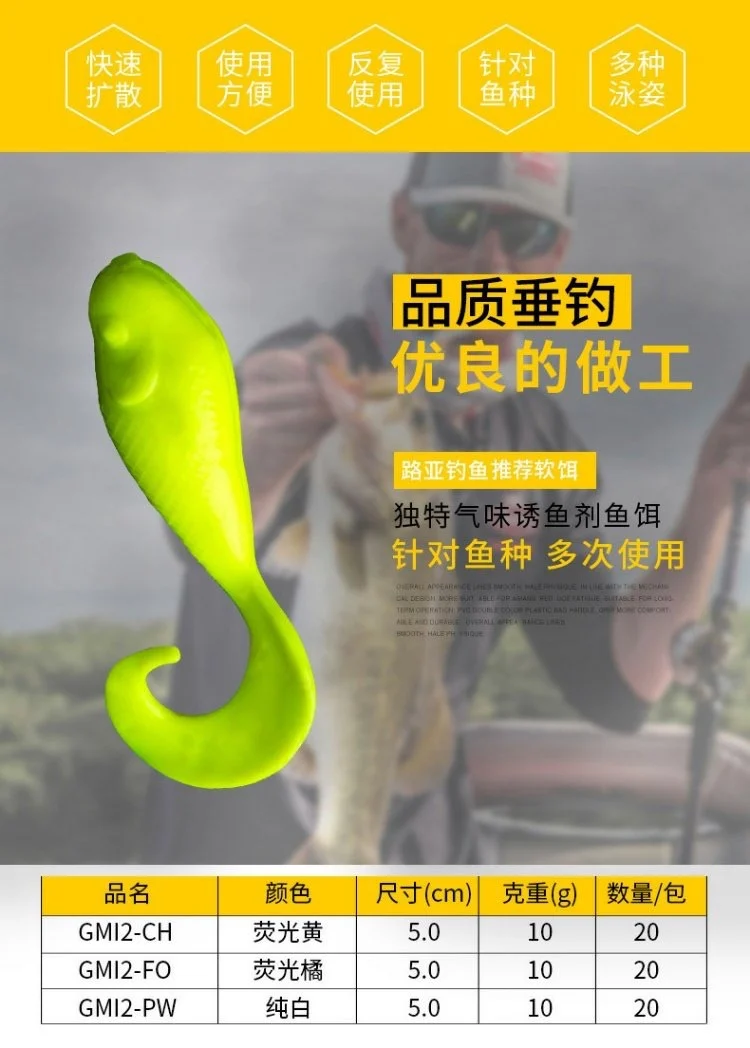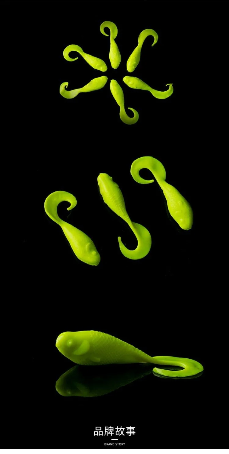 Beckley cola rizada pez pequeño 2 pulgadas 3 pulgadas 400 veces cebo falso suave en forma de pez cebo Luya cebo suave de pozo negro