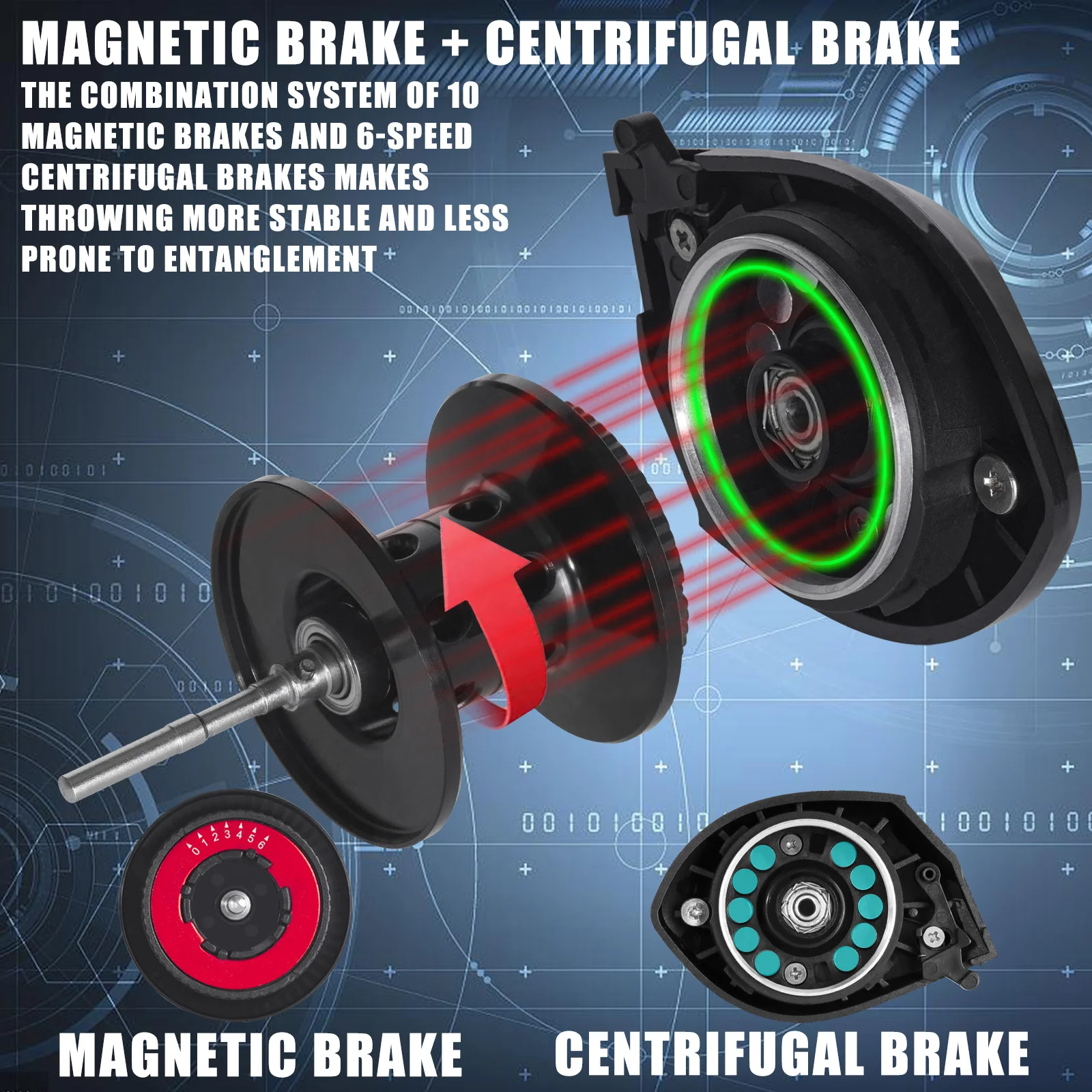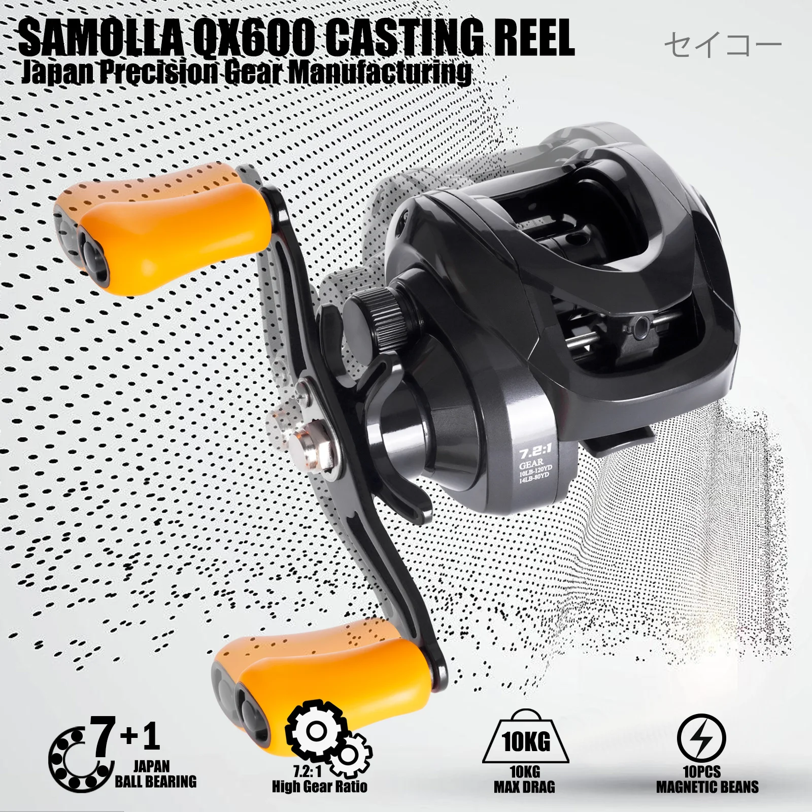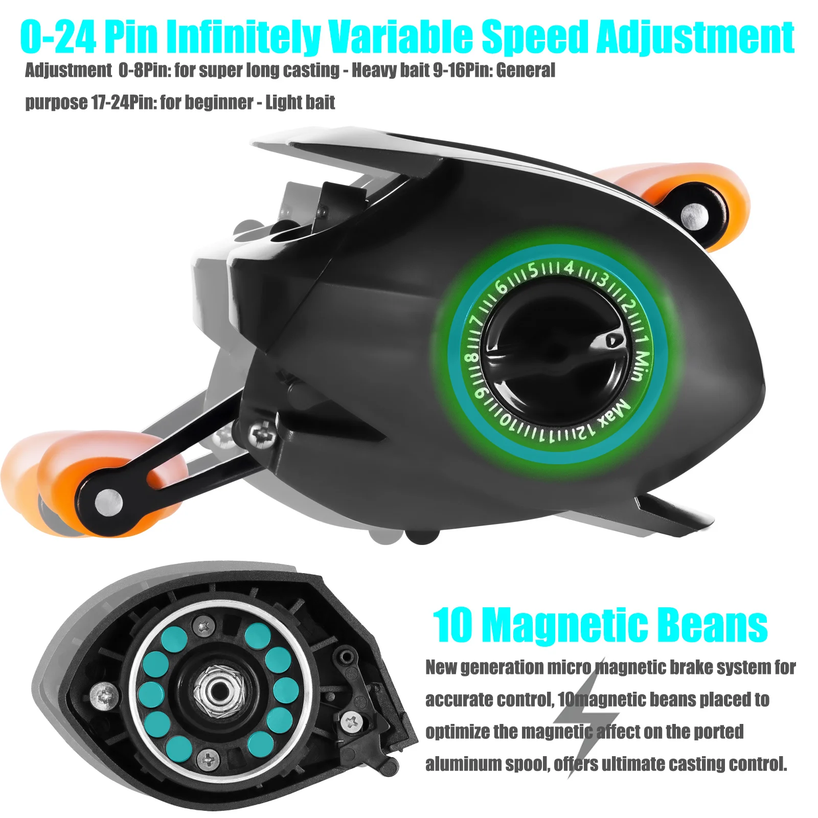 Betriel-carrete de Baitcasting, freno magnético y centrífugo de arrastre máximo de 10KG, presión de sonido de clic 7,2: 1, herramienta de fundición de agua salada impermeable