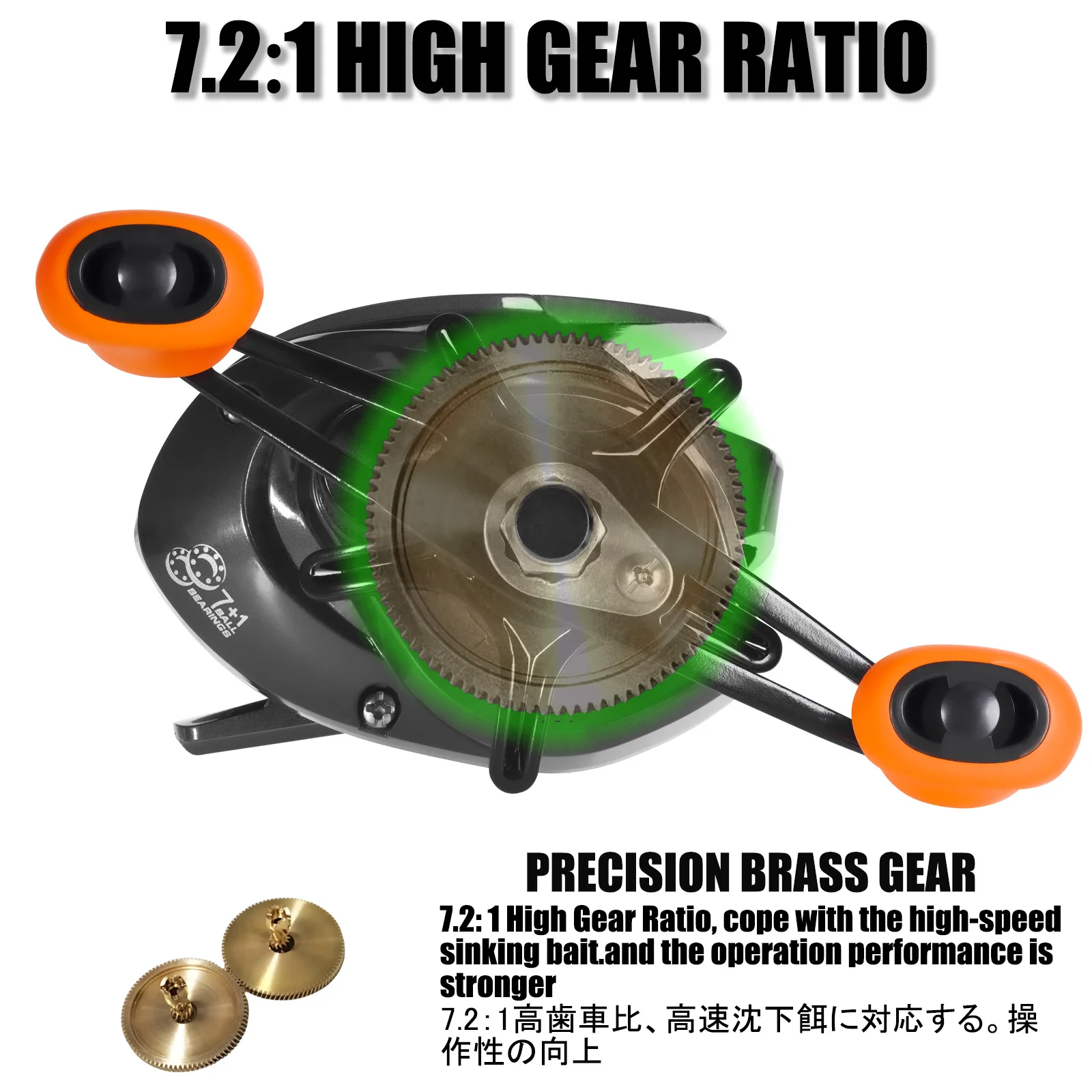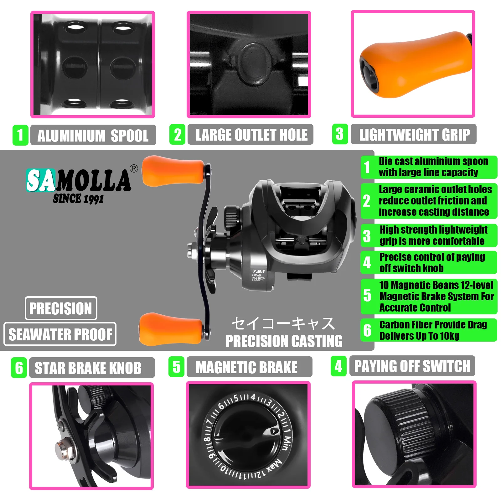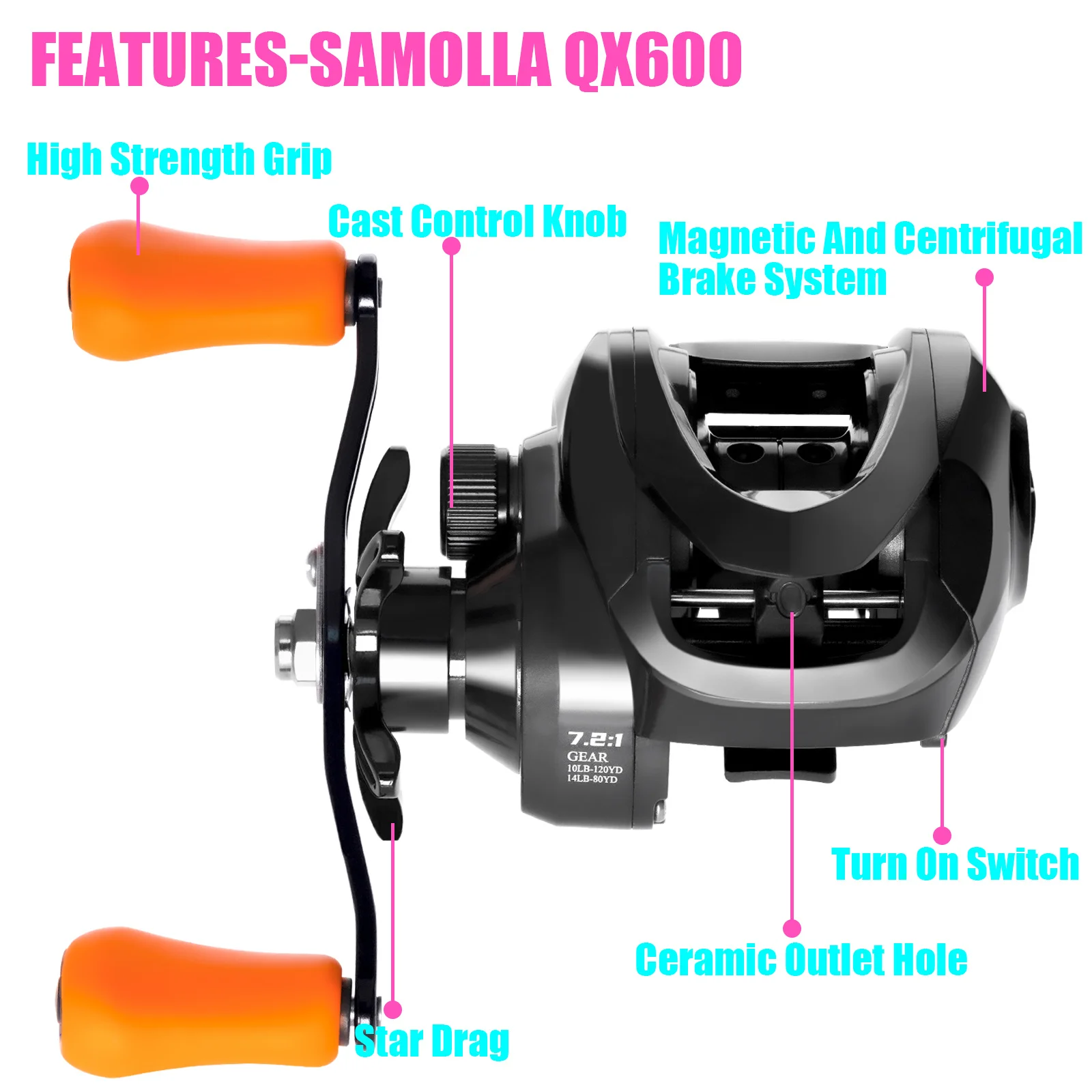 Betriel-carrete de Baitcasting, freno magnético y centrífugo de arrastre máximo de 10KG, presión de sonido de clic 7,2: 1, herramienta de fundición de agua salada impermeable