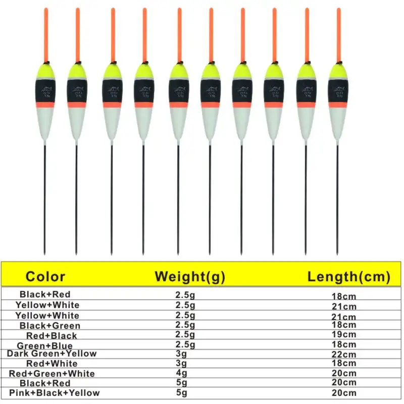 10 unids/bolsa tamaño 2,5G juego de flotador de Pesca boya Bobbers flotadores de Pesca Vertical Pesca para aparejos de Pesca de carpa