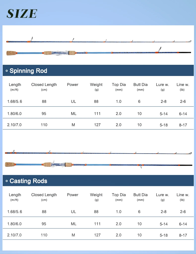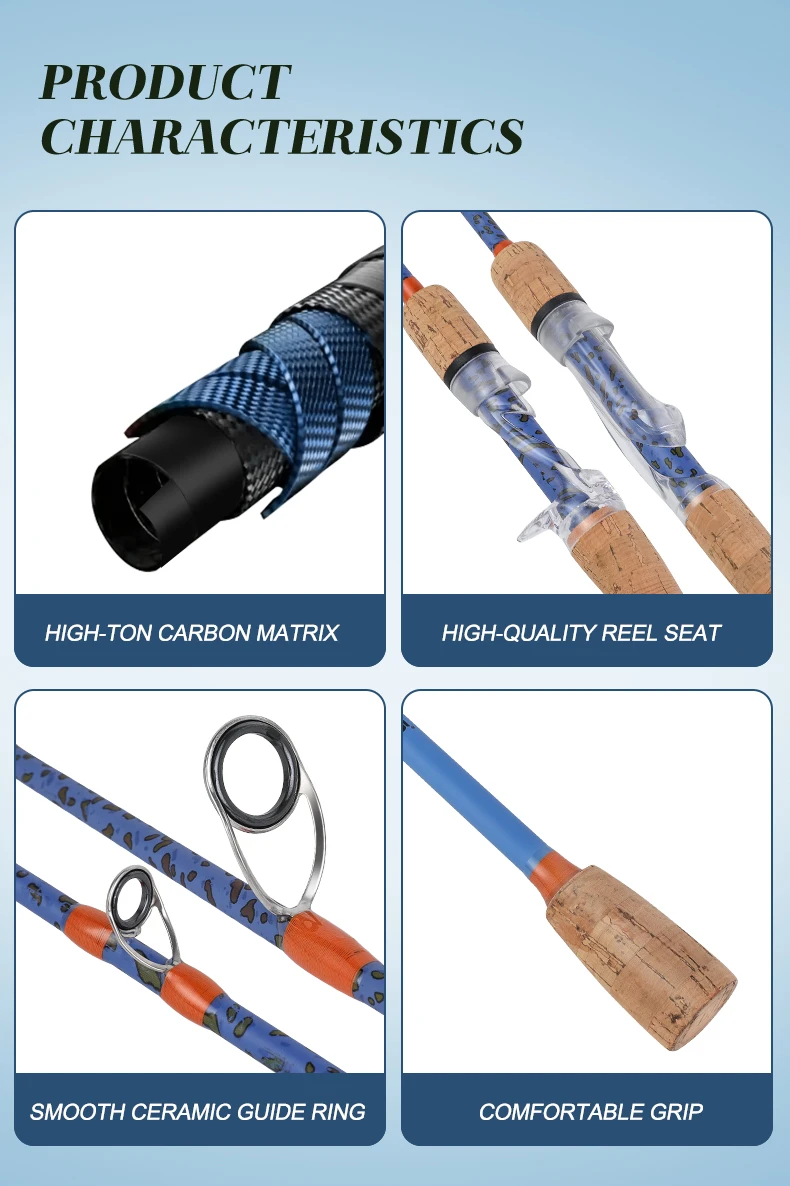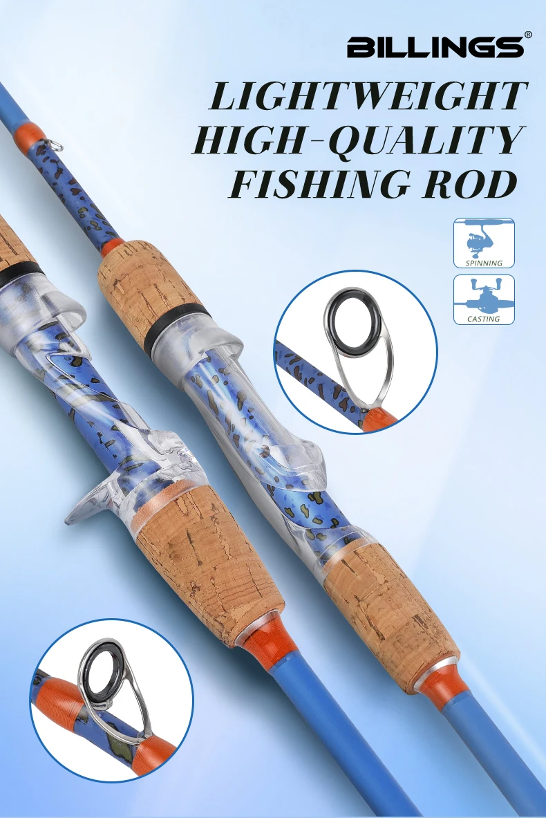BILLINGS-caña de pescar de 1,68 m, 1,8 m, 2,1 m, señuelo giratorio de carbono, caña de pescar de 2 secciones, guía de cerámica de 2-18g