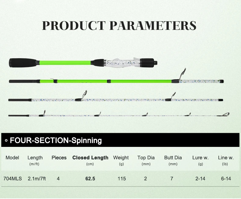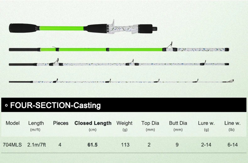 BILLINGS-caña de pescar giratoria para Baitcasting, 4 secciones, 2,1 m, caña de viaje portátil de carbono ultraligera, peso de fundición de 2-14g