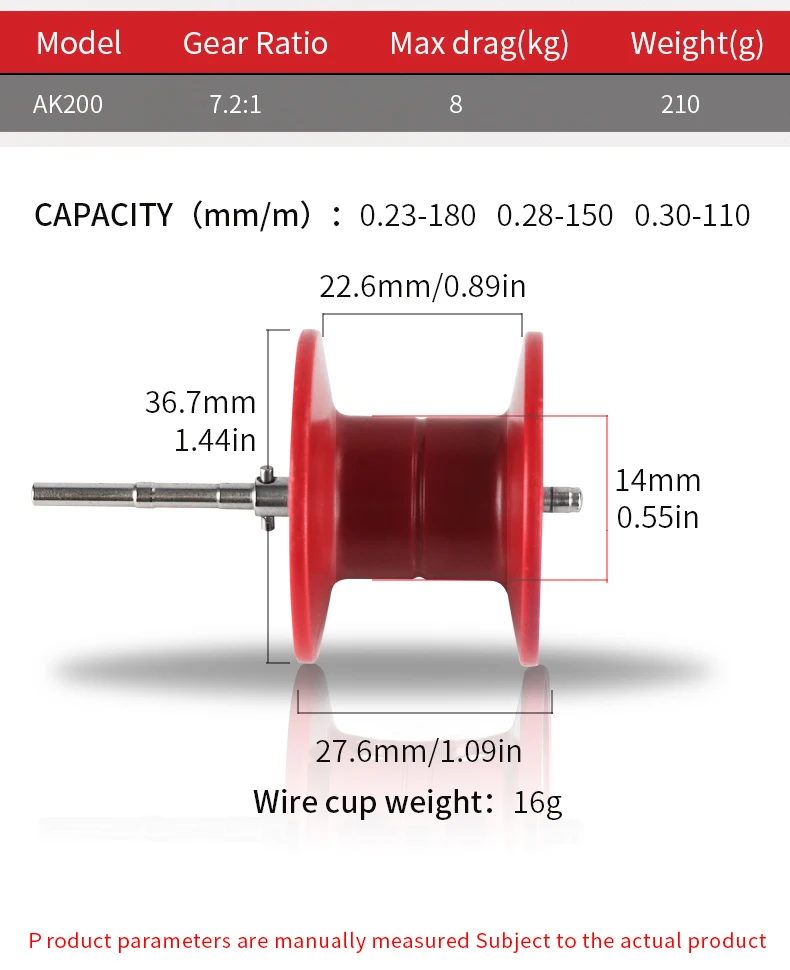 BILLINGS-carrete de Baitcasting Serie AK, relación de engranaje 7,2: 1, BB Ultra suave, arrastre máximo de 17,63 libras, carrete de Baitcaster para agua dulce, solo 7,4 Oz